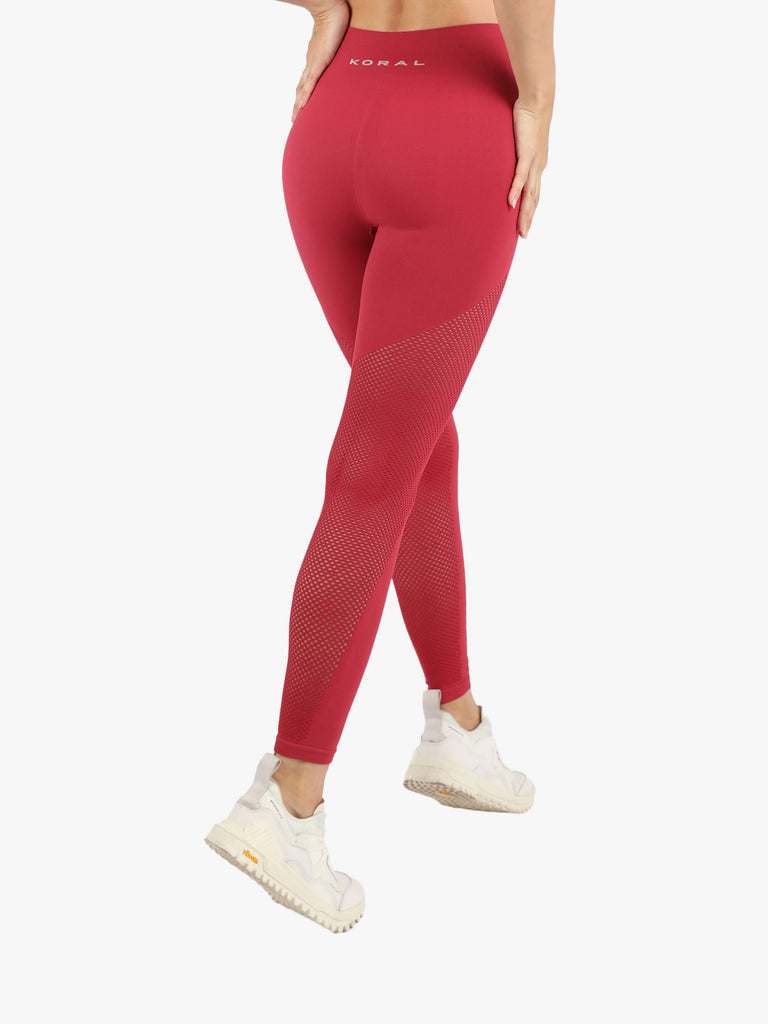 The seamless leggings from Koral are a fitness wardrobe staple. Crafted from blackout fabric, these leggings utilize stretch fiber technology in a high-rise style that flatters your waist and silhouette. Look elevated while you work out in these flattering leggings.