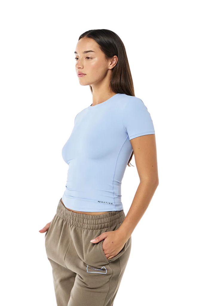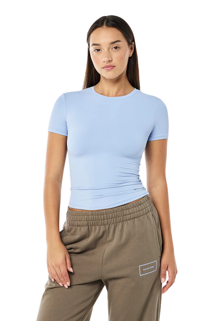 The Foundation Short Sleeve Tee in Dusty Blue is a versatile everyday essential made from ultra-soft Bodyluxe fabric. Designed for a flattering drape and easy layering, it features a relaxed silhouette that pairs well with activewear or casual pieces. Lightweight and breathable, this tee transitions seamlessly from workout to daily wear.