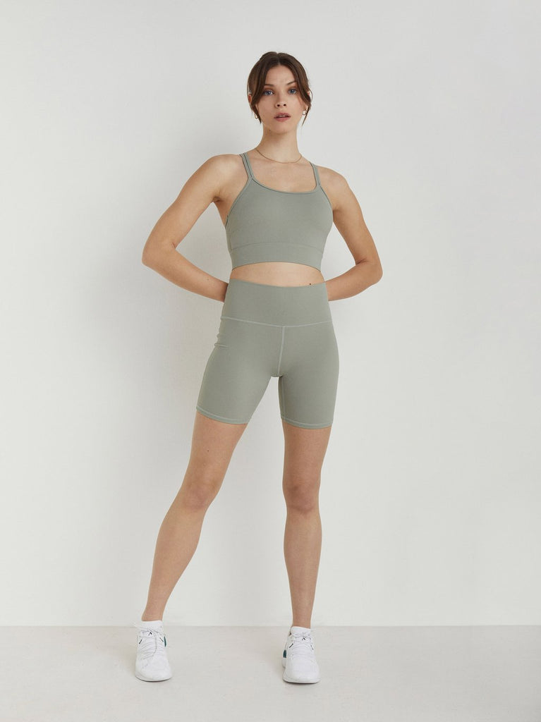 The Frances Bra is a light support bralette style made from buttery-soft Lolux fabric, with a scoop neck and spaghetti straps that criss-cross in the back. This style features a shaped bust and is non-padded.