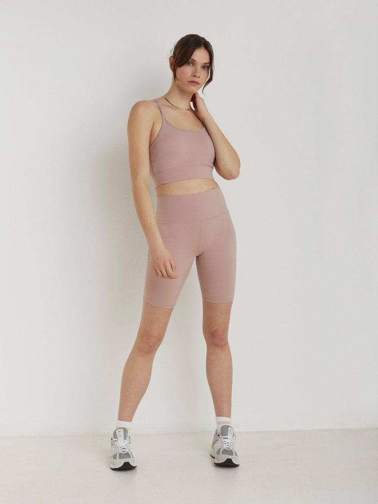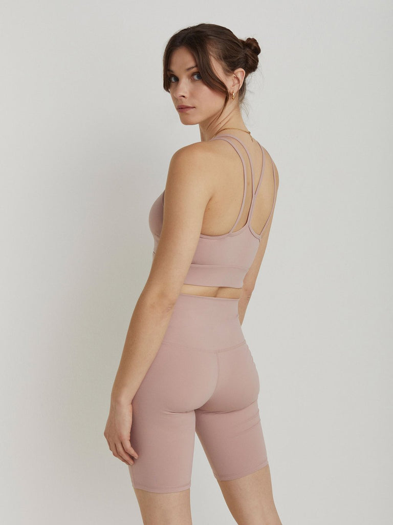The Frances Bra is a light support bralette style made from buttery-soft Lolux fabric, with a scoop neck and spaghetti straps that criss-cross in the back. This style features a shaped bust and is non-padded.