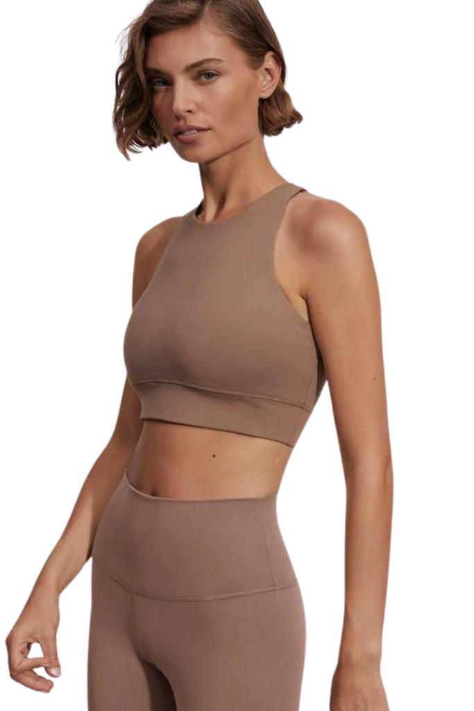 The Bea by Varley is a longline FreeSoft bra designed with a high neck, racer back, removable cups, and smoothing hem band for optimal support. Crafted from their innovative FreeSoft™ fabric and inspired by performance silhouettes, the Bea bra combines functionality with style, offering enhanced coverage and comfort for everyday activities.