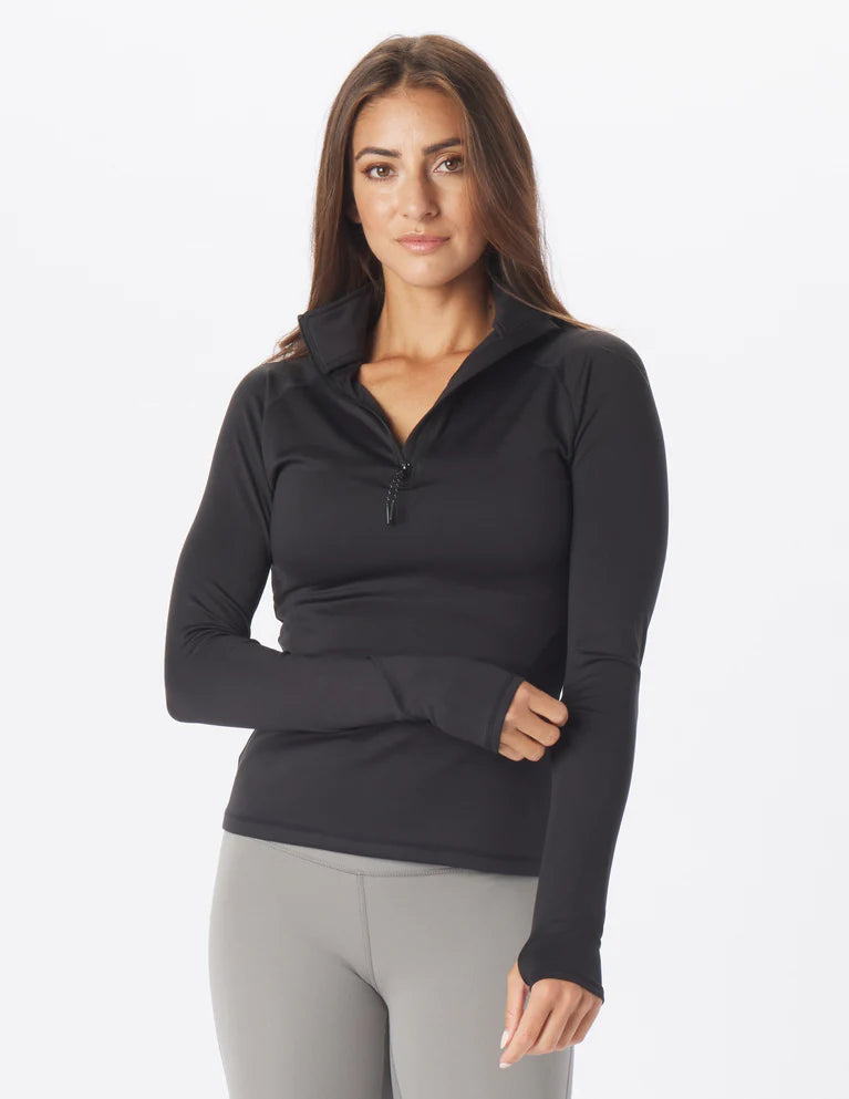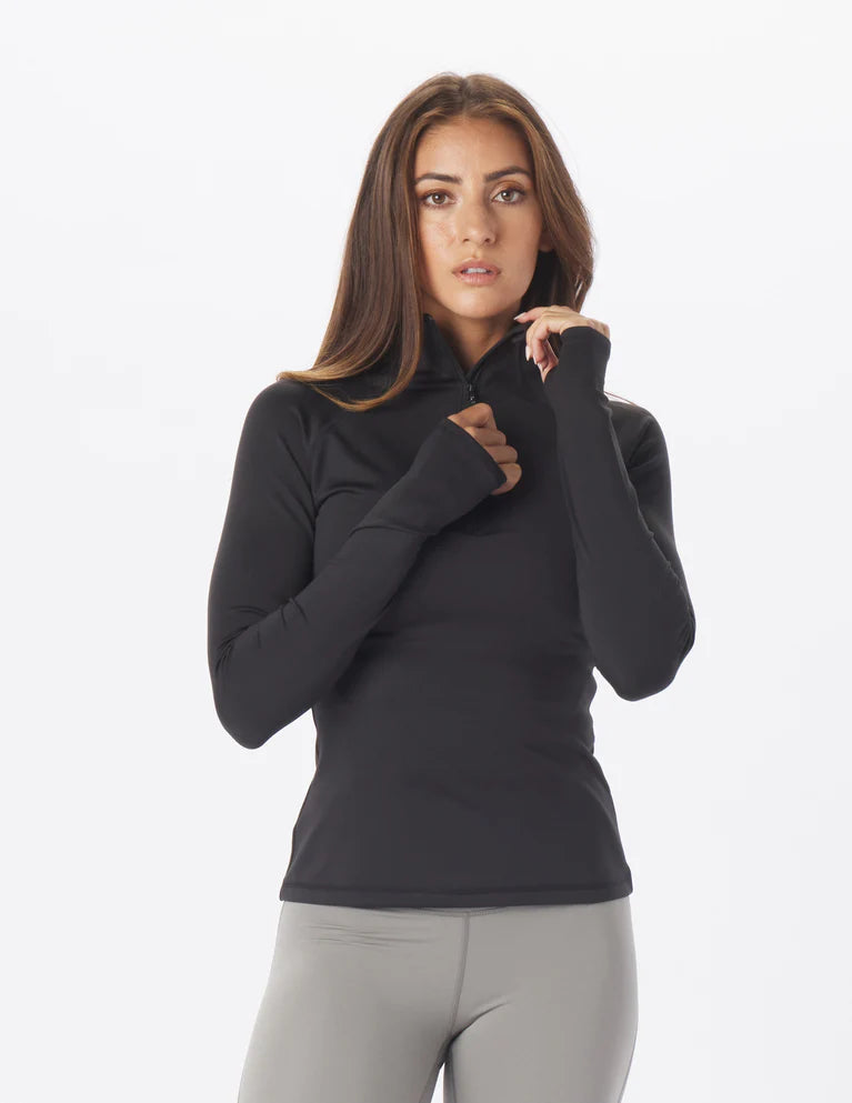 We love this breathable long-sleeve zip from Glyder. It's comfortable, flattering, and relaxed. Perfect for any studio workout or as a baselayer on the mountain.