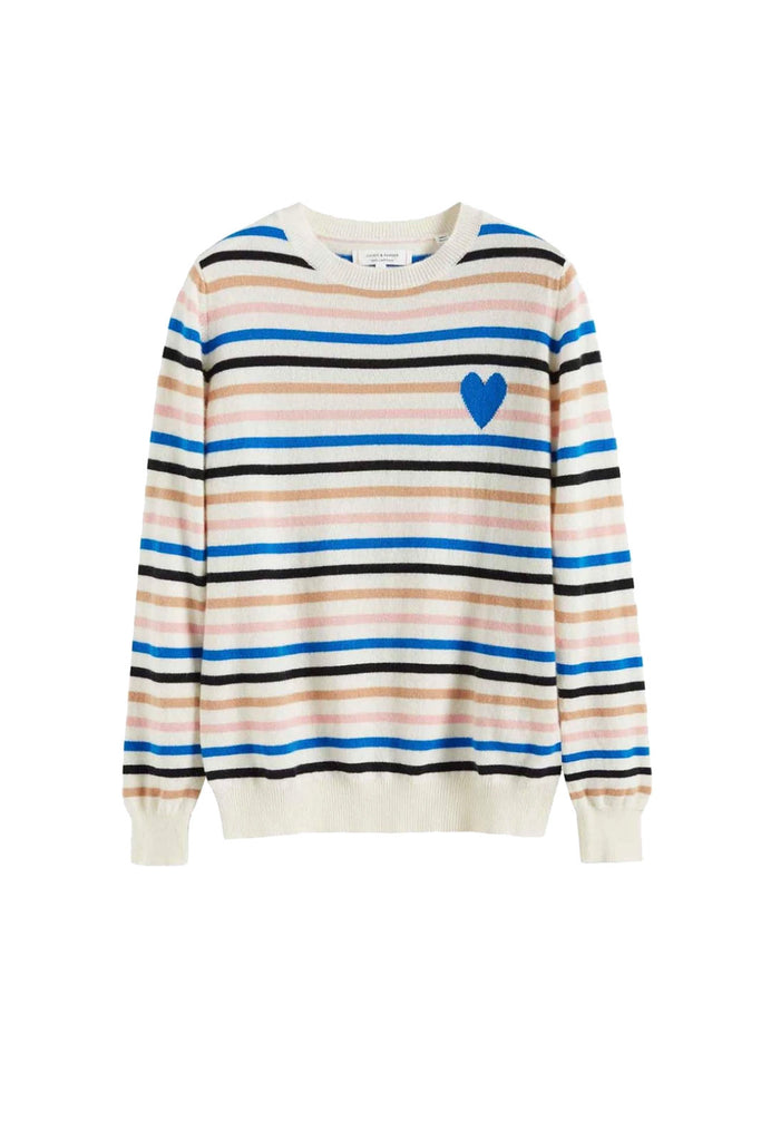 This classic crew from Chinti & Parker combines a touch of love with fun stripes and luxurious cashmere for the perfect winter sweater. Pair over sweats for a cozy at-home look or with your favorite pair of denim.