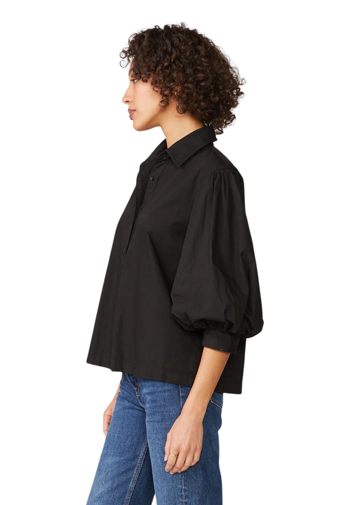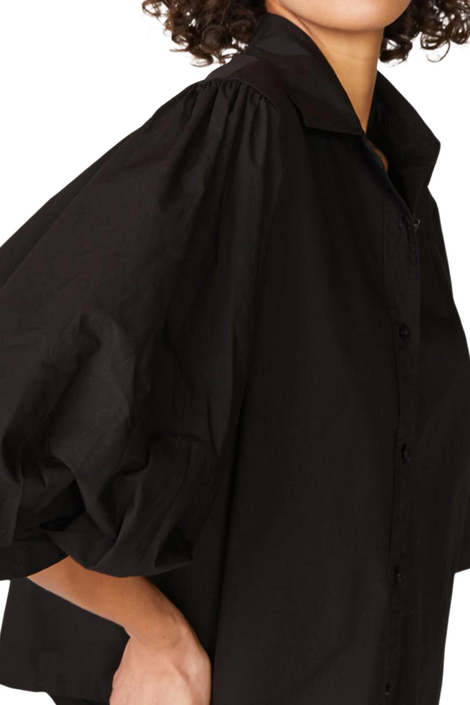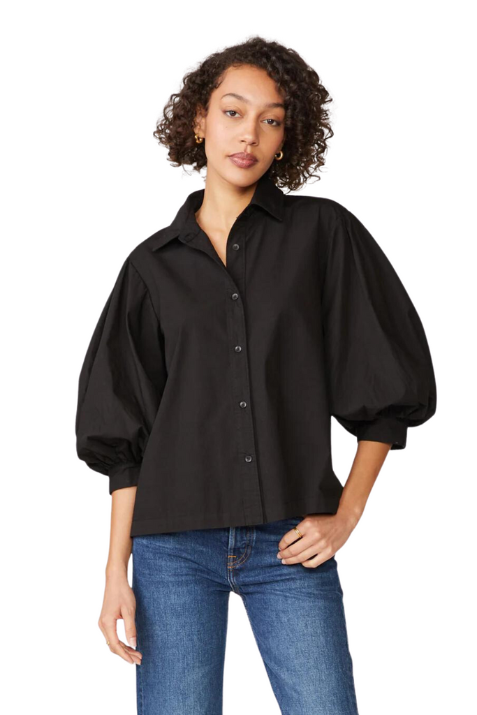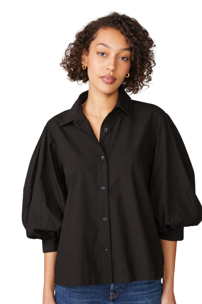 The Structured Poplin Puff Sleeve Shirt was thoughtfully designed with 3/4 length puff sleeves and a relaxed fit. This button-up is a must-have addition to your wardrobe essentials, combining style and comfort effortlessly.