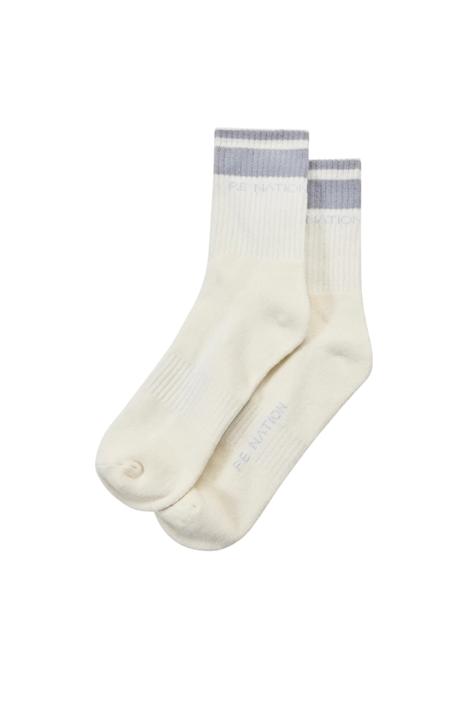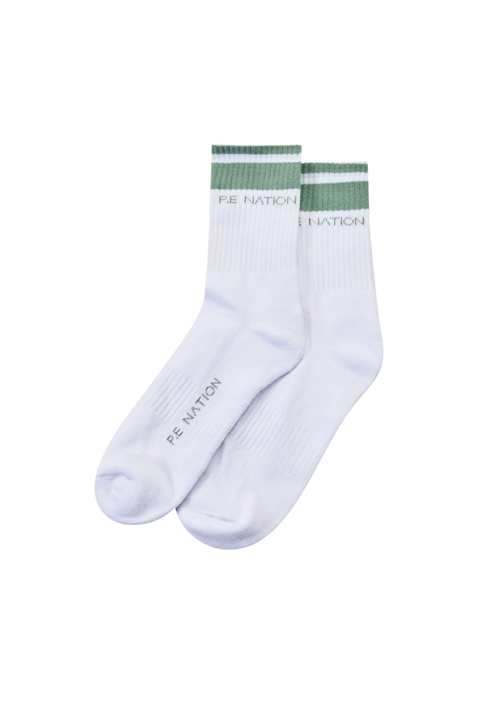 A soft cotton-blend crew sock with a ribbed finish, accented by bold stripes and signature P.E Nation branding. Comfortable, durable, and effortlessly sporty—made to elevate your everyday look from studio to street.
