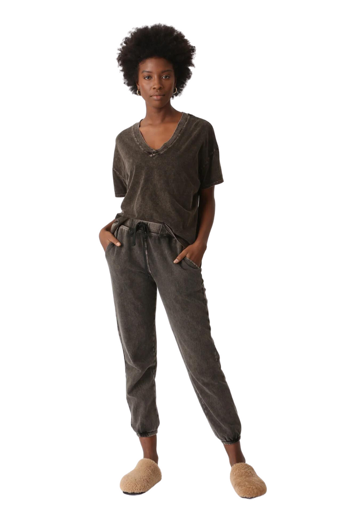 Experience the supreme comfort of Electric & Rose's top-selling Vendimia jogger, boasting incredibly soft vintage fleece, a tapered silhouette, and a waistline that cinches flatteringly at a high-rise with a drawstring.