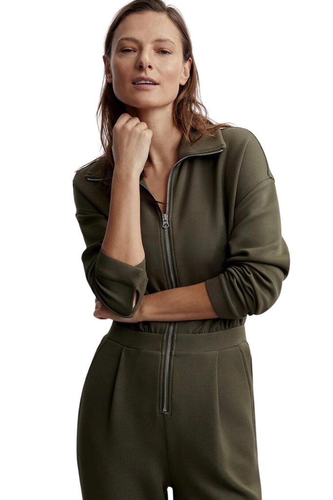 Slip into this eye-catching all-in-one for casual lounge days or elevate it for autumnal evenings. Made from Varley's exceptional DoubleSoft fabric, renowned for its unmatched softness and quality, the Jessie jumpsuit offers a relaxed fit and a front zip opening that can be styled according to your preference. Featuring dropped shoulders and convenient popper fastenings at the cuffs, this jumpsuit is the ultimate go-to for a quick and stylish outfit.