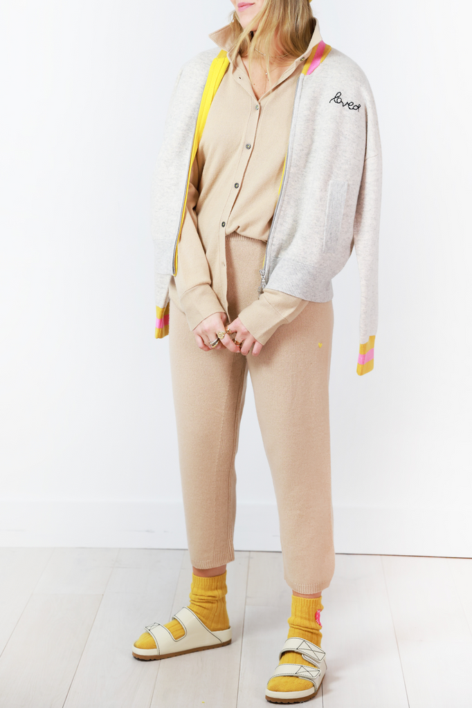 This cozy jogger is made with 100% luxe cashmere and looks every so chic. These pants are perfect to wear at home or out to dinner. Pair with the Mia Sweater Shirt.