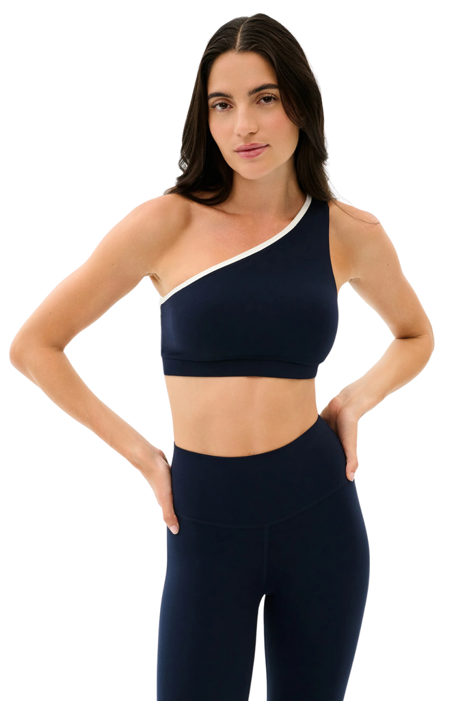 The Josie Airweight One-Shoulder Bra brings a fresh update to the Airweight collection, featuring an asymmetric strap and refined contrast stitching at the neckline. Made from ultra-breathable, second-skin fabric, it delivers soft, lightweight support without compromising comfort.
