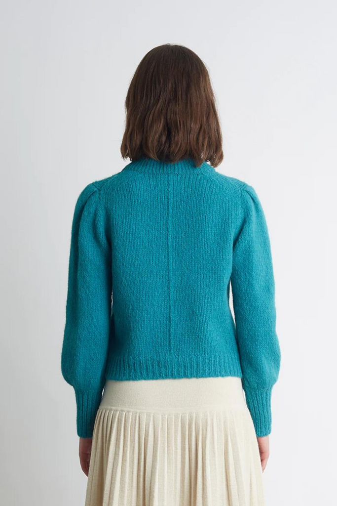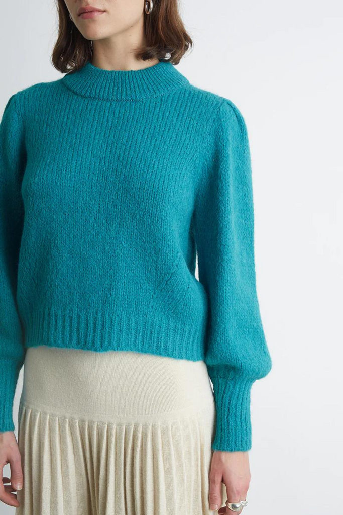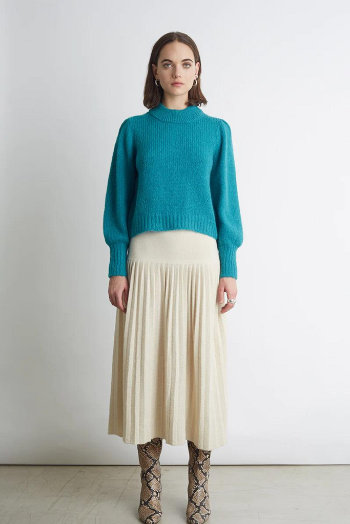 The Kate Sweater from Eleven Six is the must-have, easy-to-wear fashion staple of the season. Featuring feminine shoulder pleats, blouson sleeves, and a comfortably cropped fit, it effortlessly complements your favorite high-waisted pants, exuding a sense of refined relaxation. The classic jersey stitch in the essential Jade color offers an effortless and versatile style.