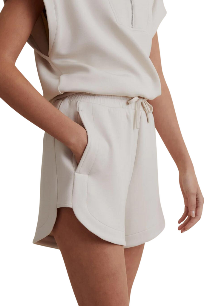 Crafted from Varley's luxurious DoubleSoft™️ fabric, these shorts are skillfully tailored to a slightly shorter length, offering an impeccable fusion of style and comfort. The sophisticated curvature detailing introduces a hint of elegance, while the contemporary elements of stepped side leg panels and gracefully dipped drawcord infuse a fresh spin into the timeless high-waisted concept. The Keely shorts, versatile in nature, effortlessly transition between casual and formal settings, making them an essential summer wardrobe staple.