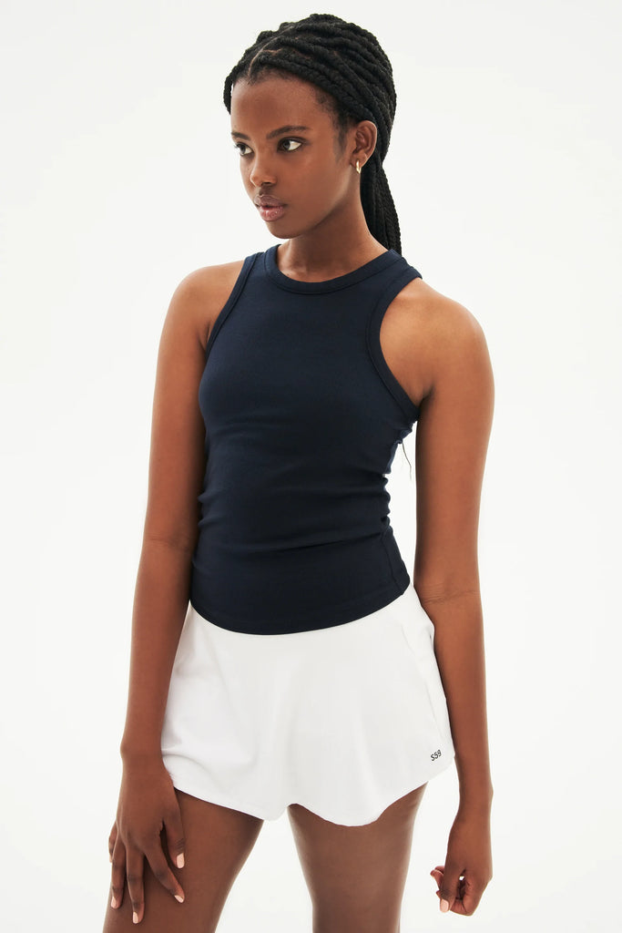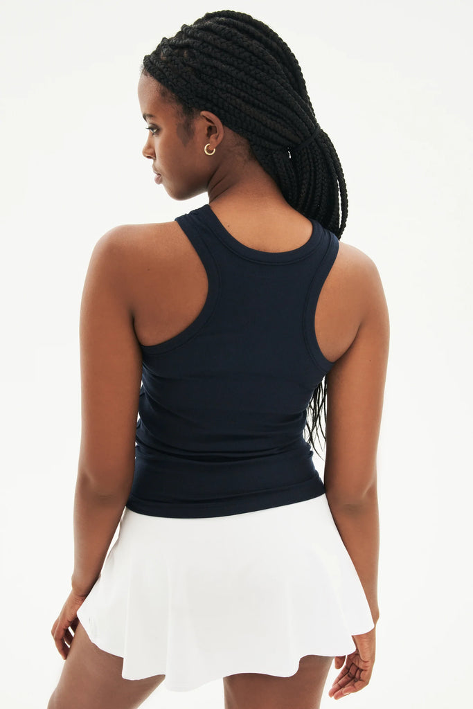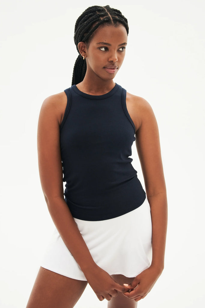 A Body-hugging racerback layering tank for running, yoga, CrossFit, barre, Pilates, spin class, or a hardcore workout at the gym.