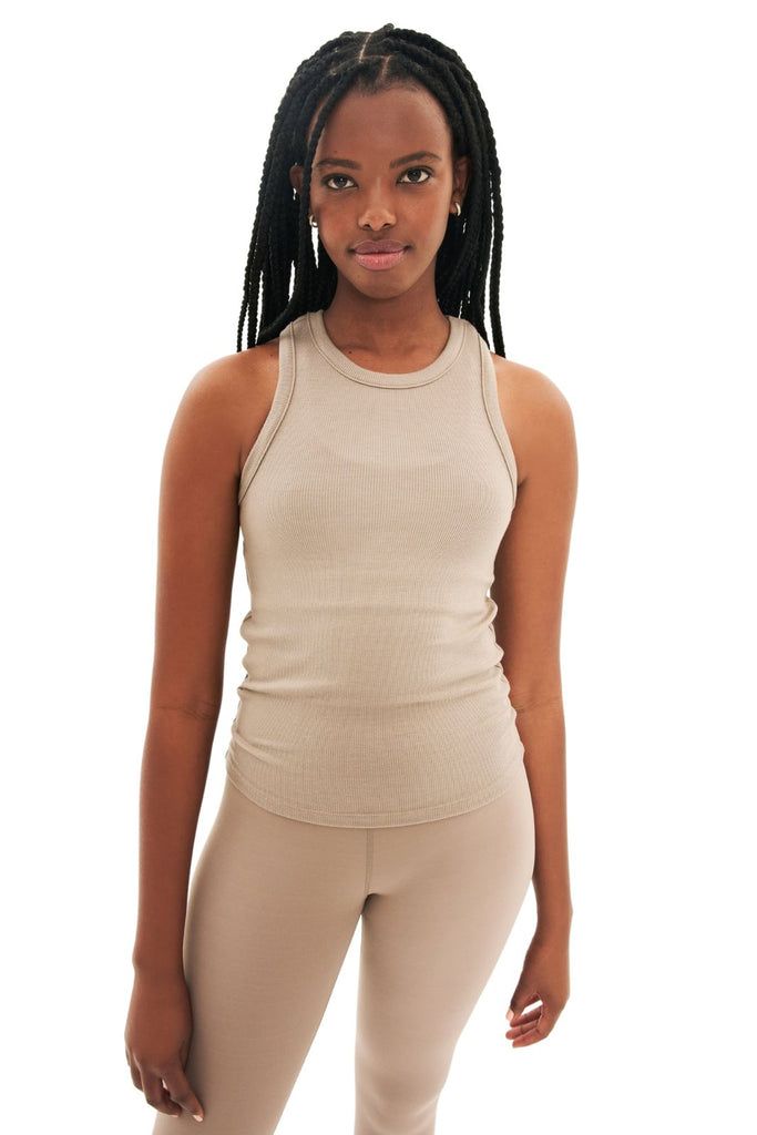 A Body-hugging racerback layering tank for running, yoga, CrossFit, barre, Pilates, spin class, or a hardcore workout at the gym.