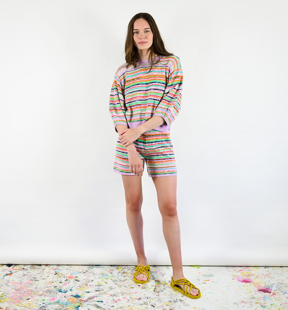 This knit top from Kerri is a summer must-have. They are so fun with the pop of color, a beautiful fabric, and a flattering fit. Pair with the matching shorts for an effortless look.