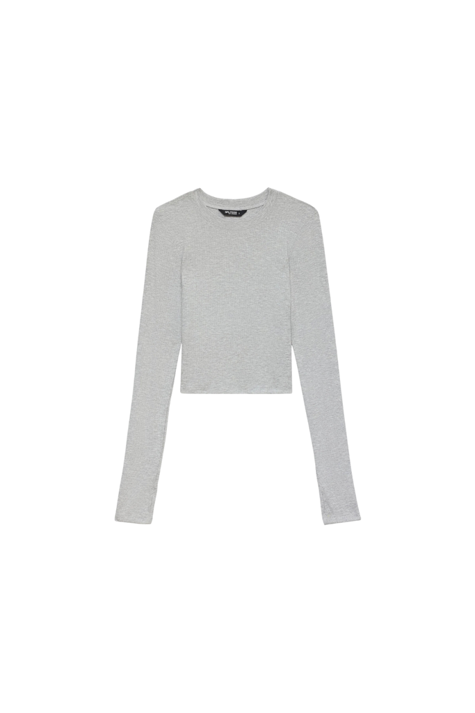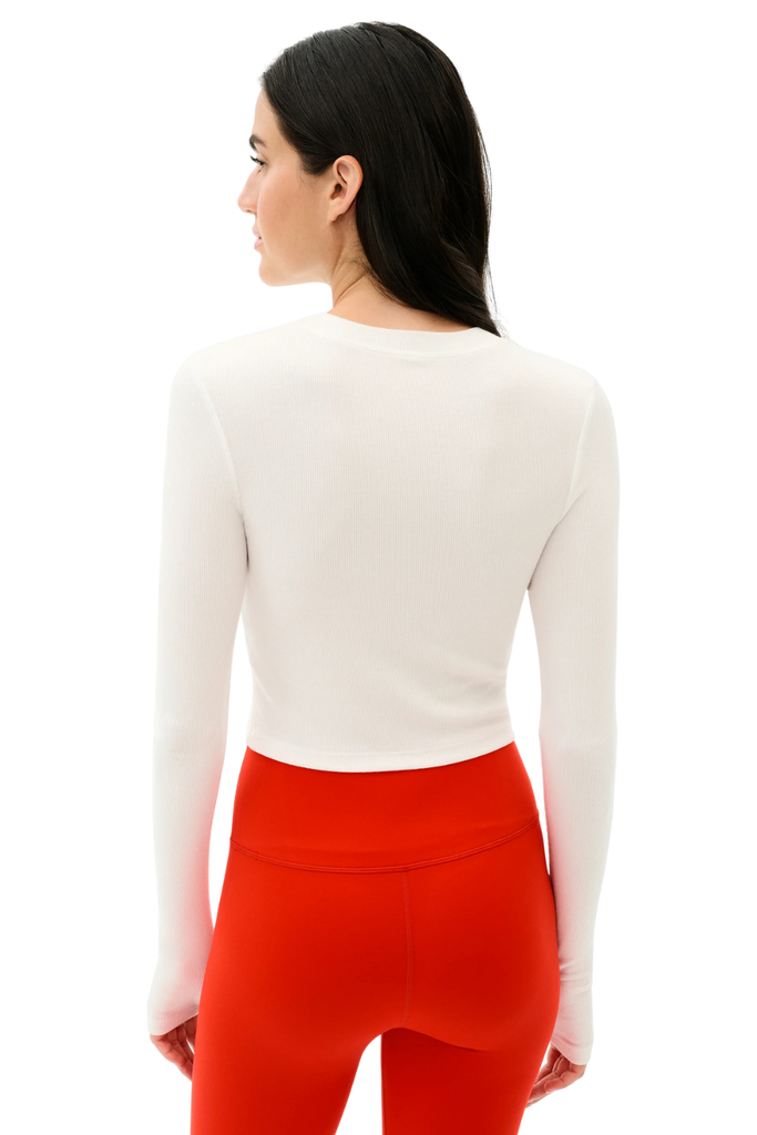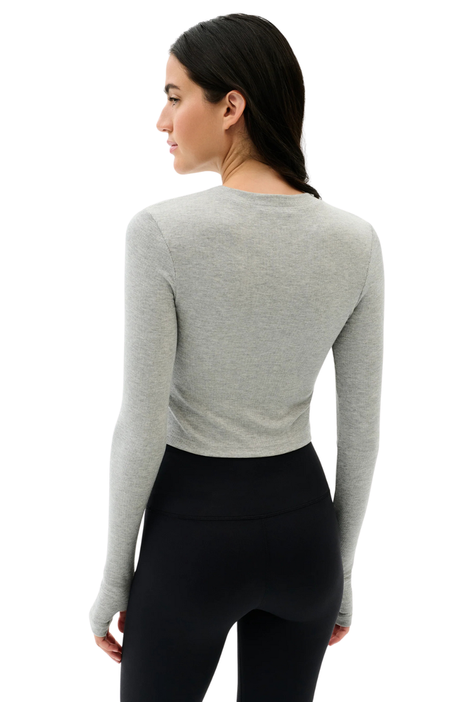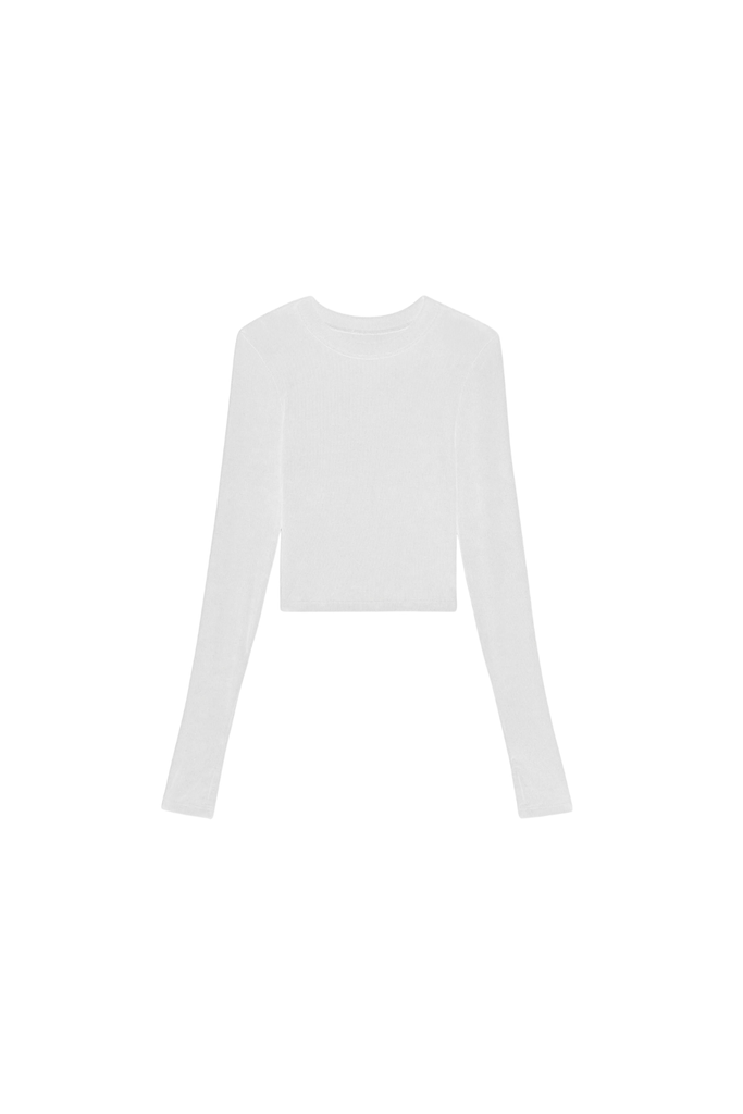 A semi-fitted long-sleeve top refreshed in a cropped silhouette, perfect for layering or wearing on its own. Crafted from ultra-soft baby rib fabric that drapes smoothly and feels effortless on the body.