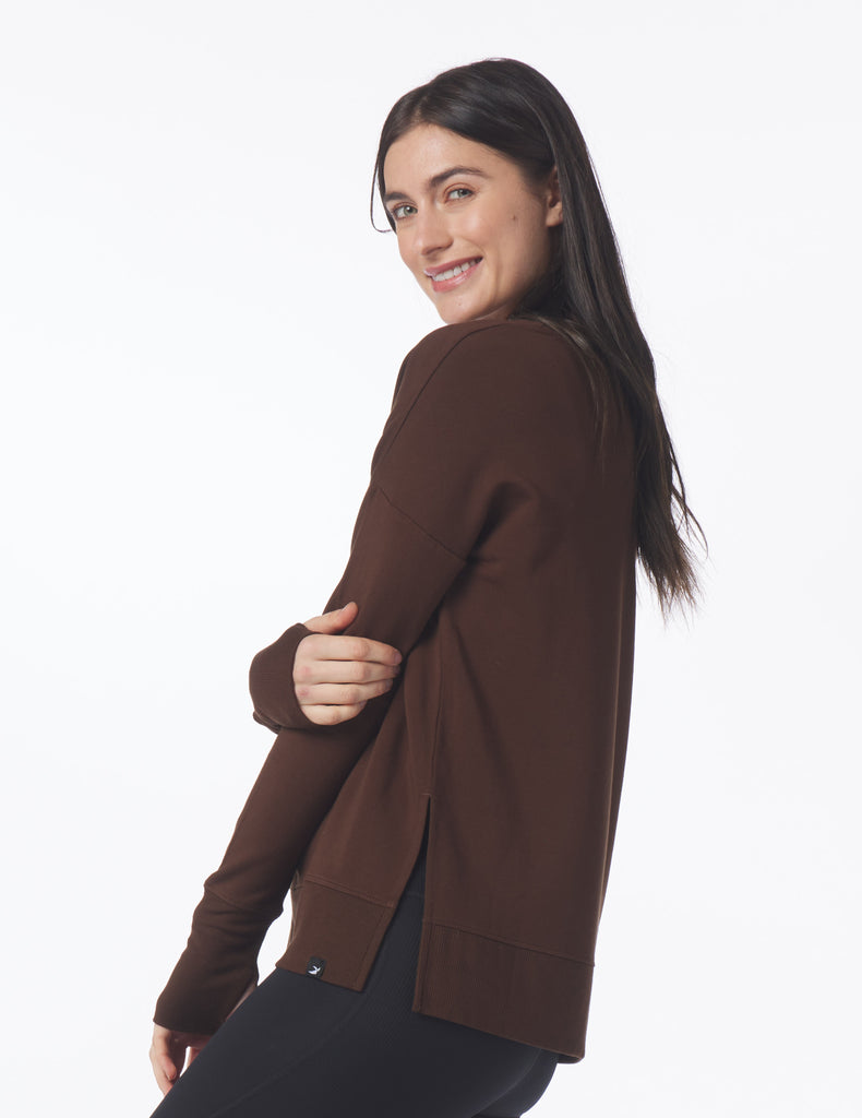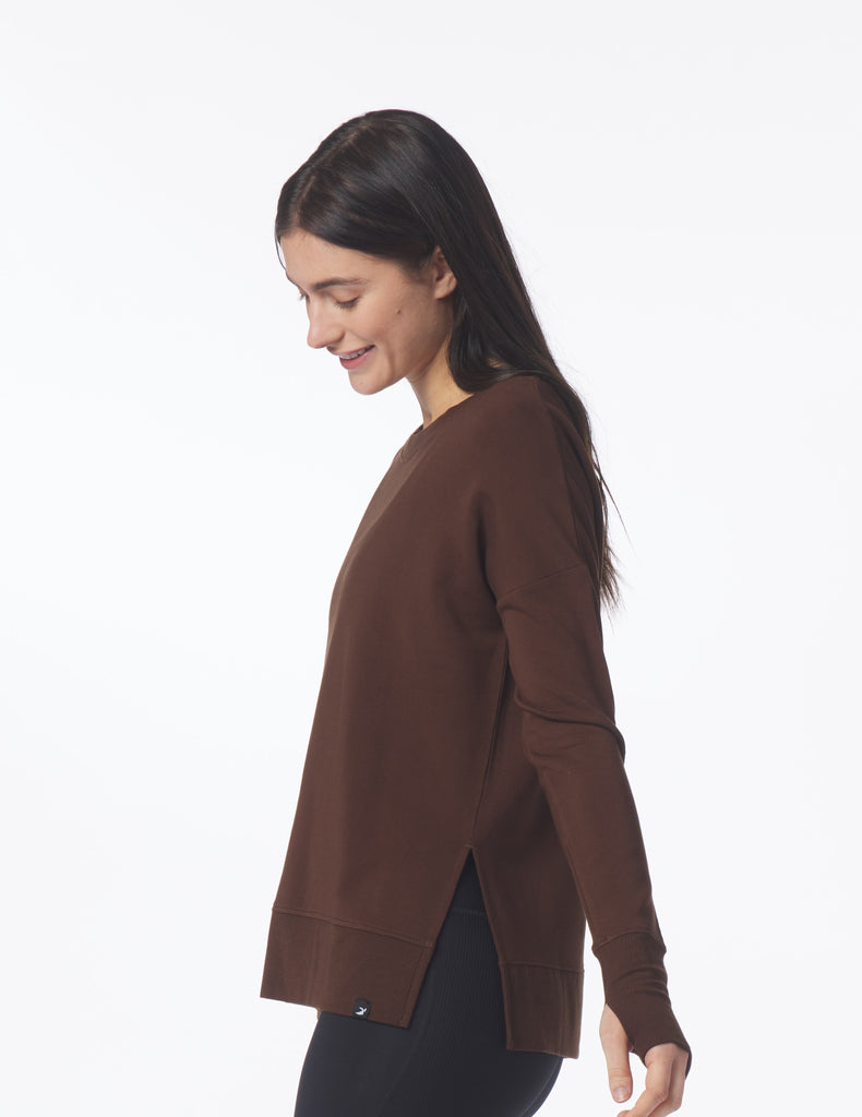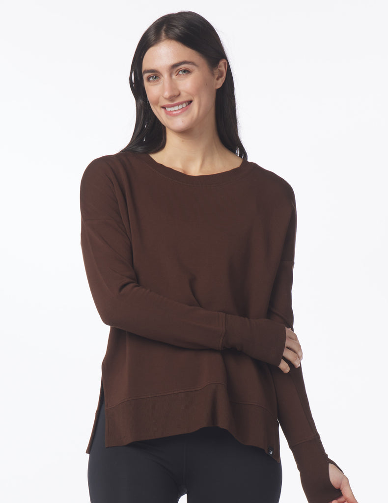 We love this breathable long sleeve from Glyder. It's comfortable, flattering, and relaxed. Perfect for any studio workout.