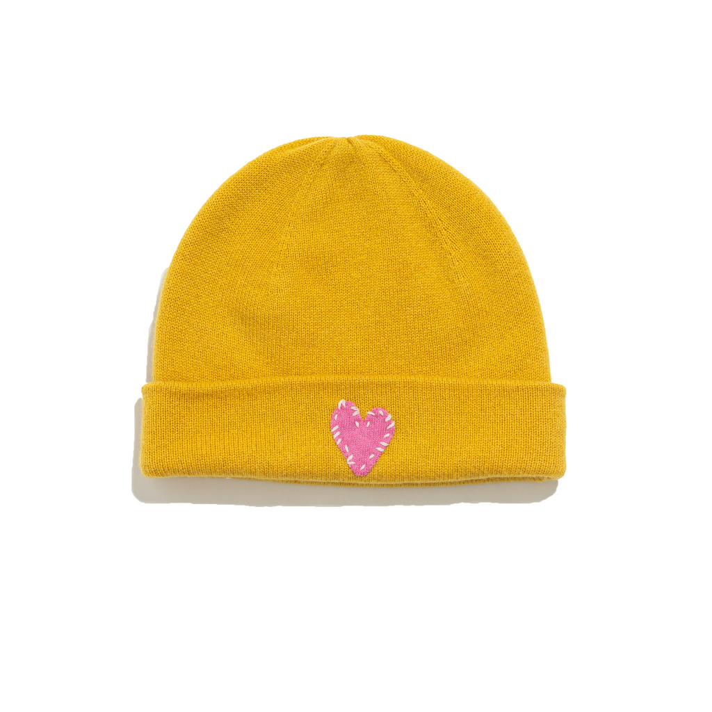 This cashmere beanie from Kerri Rosenthal is sure to send love to you and everyone else throughout the day. The beautiful color with the heart patch is the perfect amount of added detail. 100% Cashmere