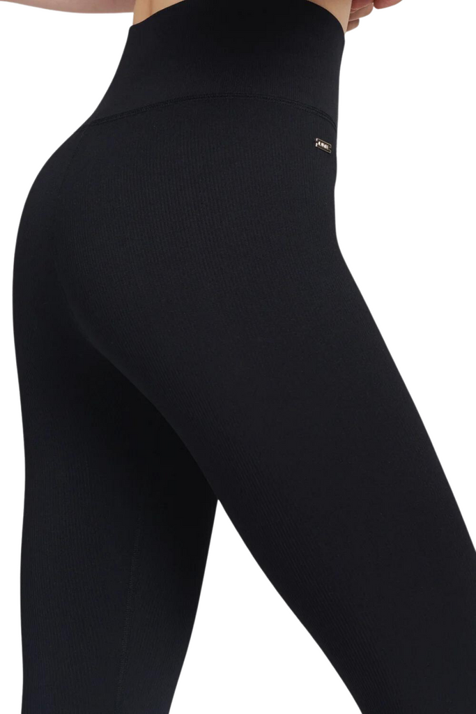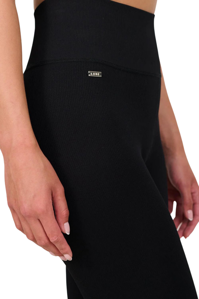 Crafted from Lune's signature rib fabric, their full-length leggings feature a high-rise waistband design that provides targeted support where you need it most. Their seamless program incorporates traceable and recycled polyamide Q-Nova, which is a blend of regular and recycled polyamide, resulting in a fully recyclable material after use. This unique blend of one solid yarn provides compression and shaping, while the Q-Nova fabric's 4-way stretch ensures maximum comfort during movement, lifting, and contouring your body.