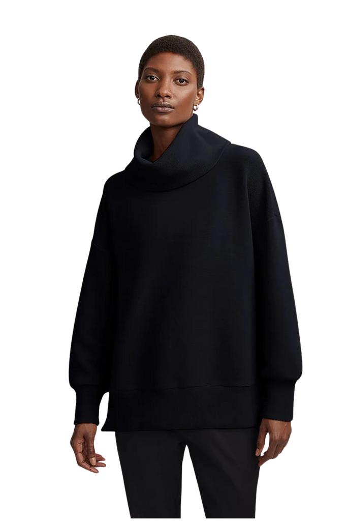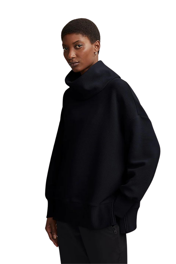 The Milton by Varley a stunningly oversized sweatshirt. This contemporary wardrobe staple showcases exquisite bellowed sleeves, side zip detailing, dropped shoulders, and deep cuffs for a fashion-forward look and feel.