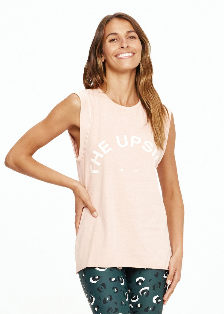 A fun twist on a nostalgic muscle tank; we love the relaxed fit, fun branding, and youthful shape.