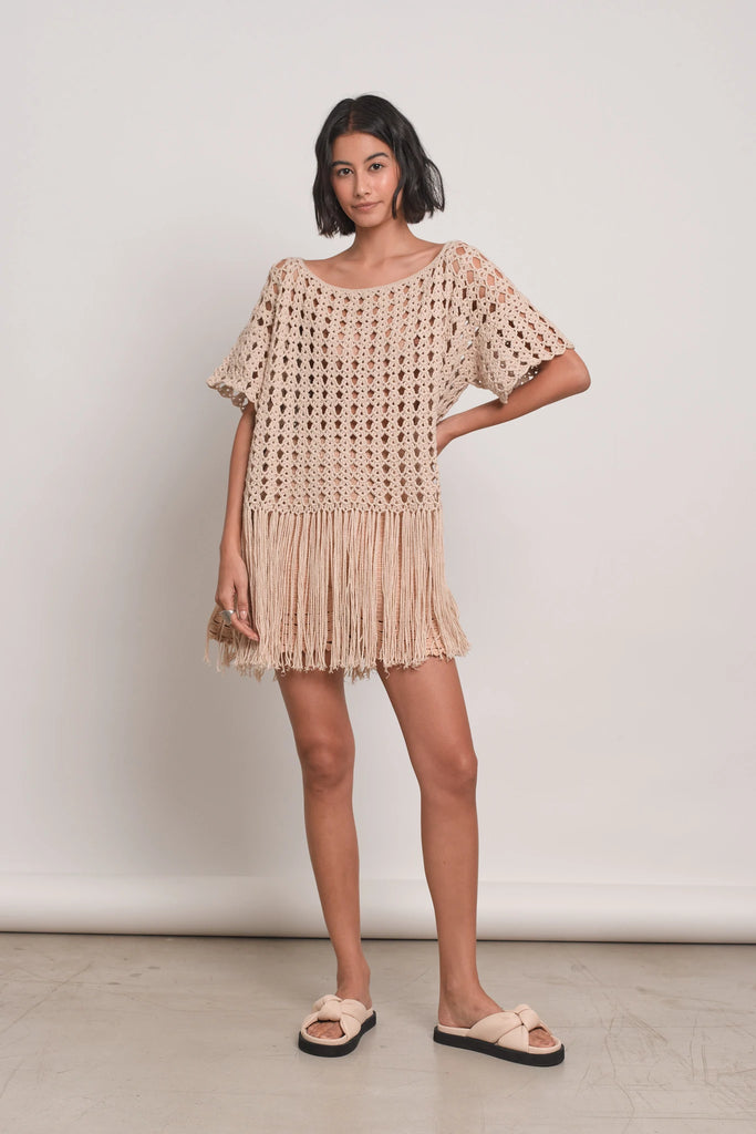 We are so in love with this fun crocheted top from Eleven Six. With slightly ballooned sleeves and a feminine cut, it can elevate a pair of white pants instantly or is a great cover-up beach or poolside. Can't get enough of this beautiful piece!