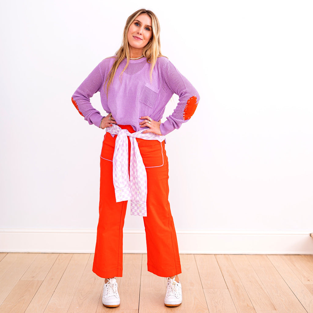 We are so in love with this crew from Kerri Rosenthal. The fun crocheted knit, relaxed fit, and warm tones are flattering and beautiful. We love to pair over leggings for an easy, effortless look.