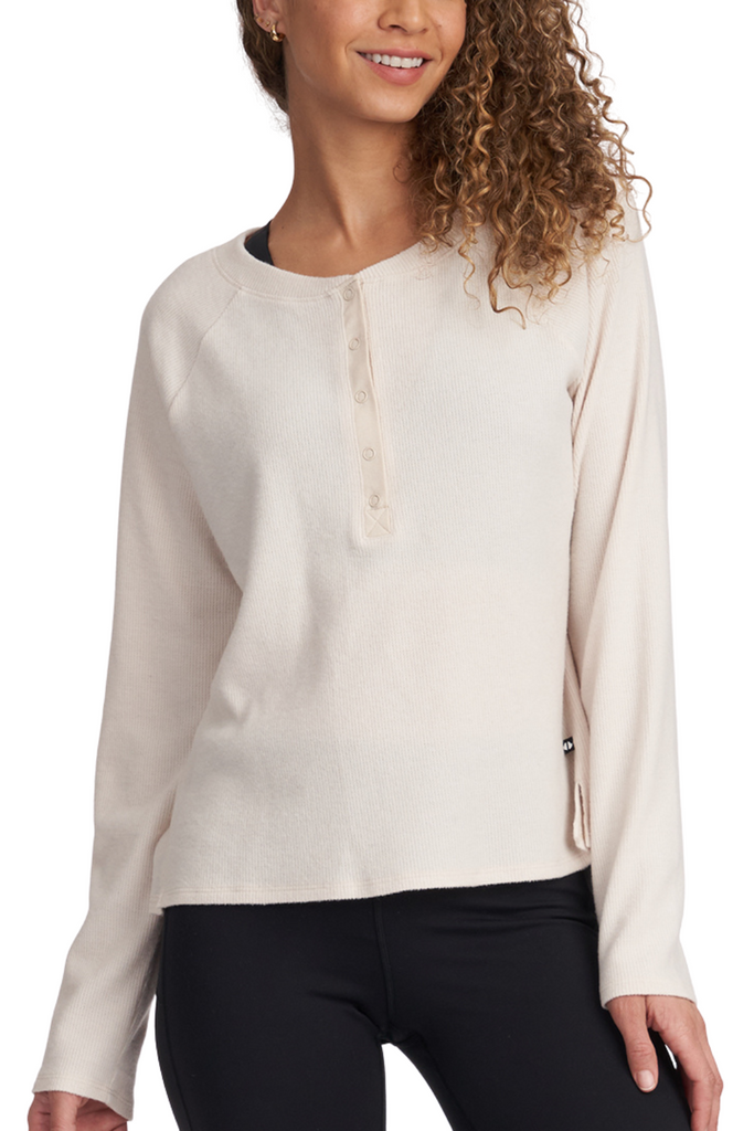 Get cozy this fall in this relaxed fit, brushed waffle henley top. Made with soft rib textured fabric - it's a must-have for lounging & relaxing.