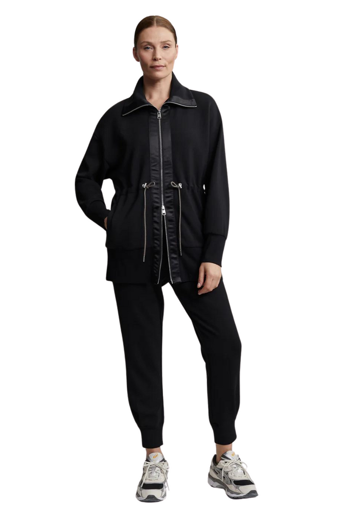 Experience unparalleled comfort in the longline Ridgefield sweat. Crafted from Varley's signature DoubleSoft material, this zip-through sweatshirt boasts a relaxed fit, complete with a waist cinch and a sophisticated sateen trim down the center front. The high neck and drop shoulder design of the Ridgefield sweatshirt seamlessly blend classic fashion with contemporary comfort.