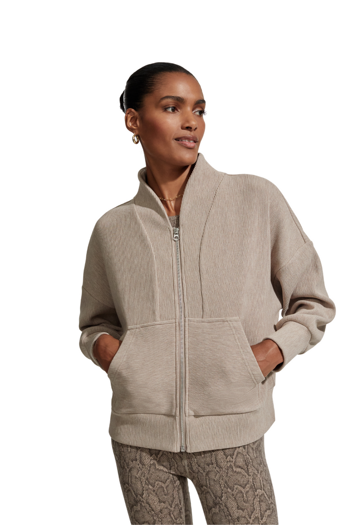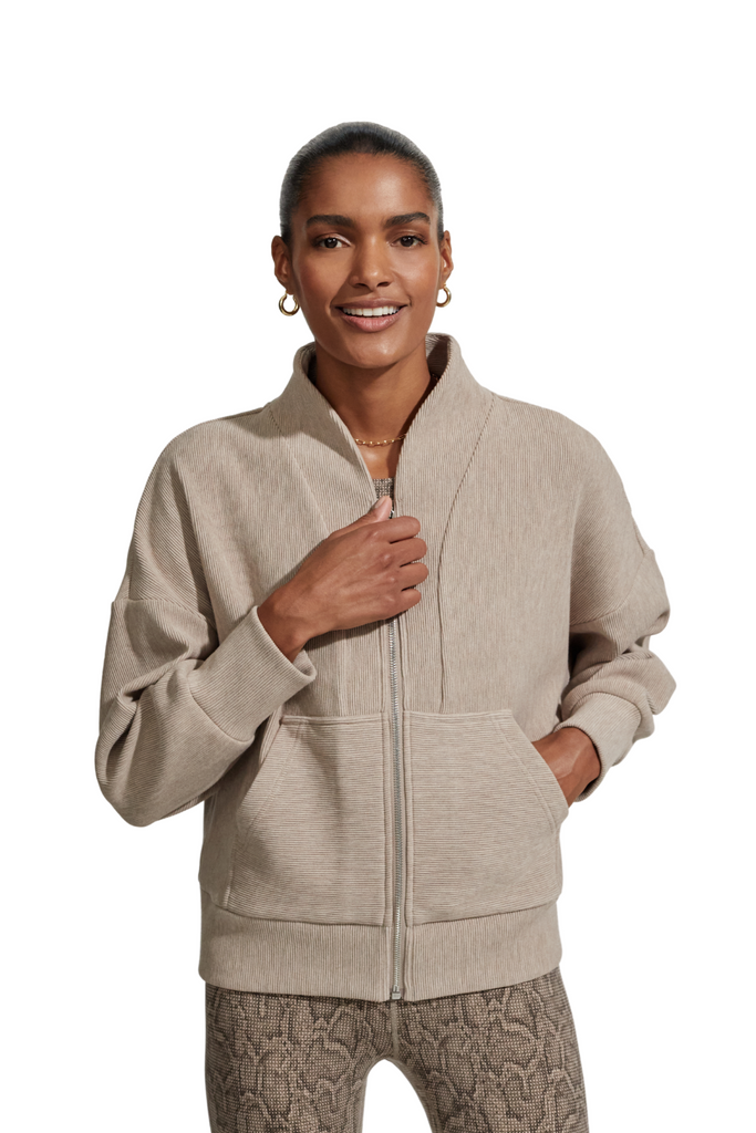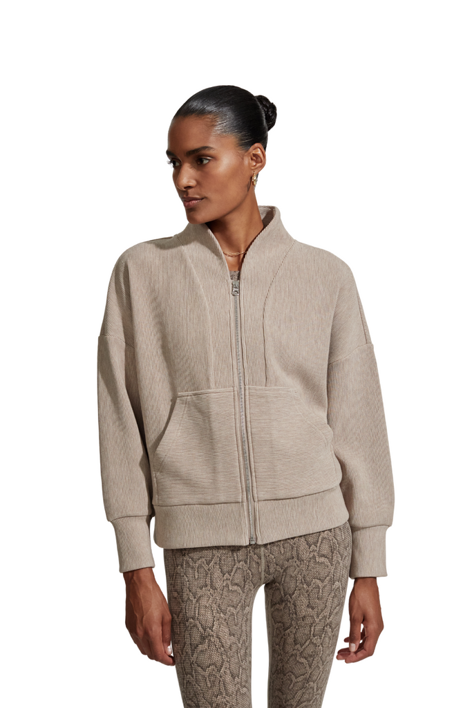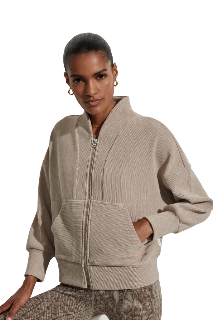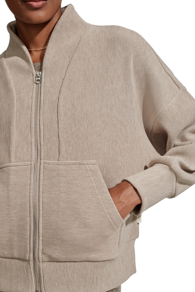 The Rosanne is Varley's modern take on the timeless bomber jacket crafted from their beloved Ottoman rib fabric. This relaxed-fit sweatshirt boasts a boxy silhouette, dropped shoulders, a kangaroo pocket, and a grown-on paneled neck. It's perfect for layering up and adding some style to your wardrobe season after season.