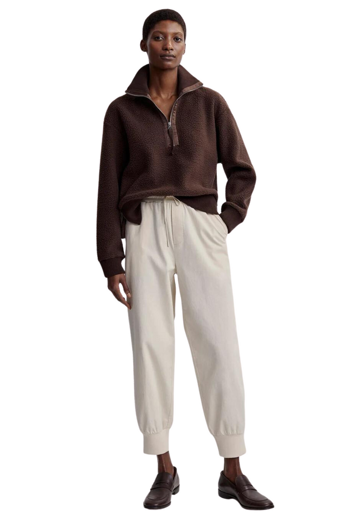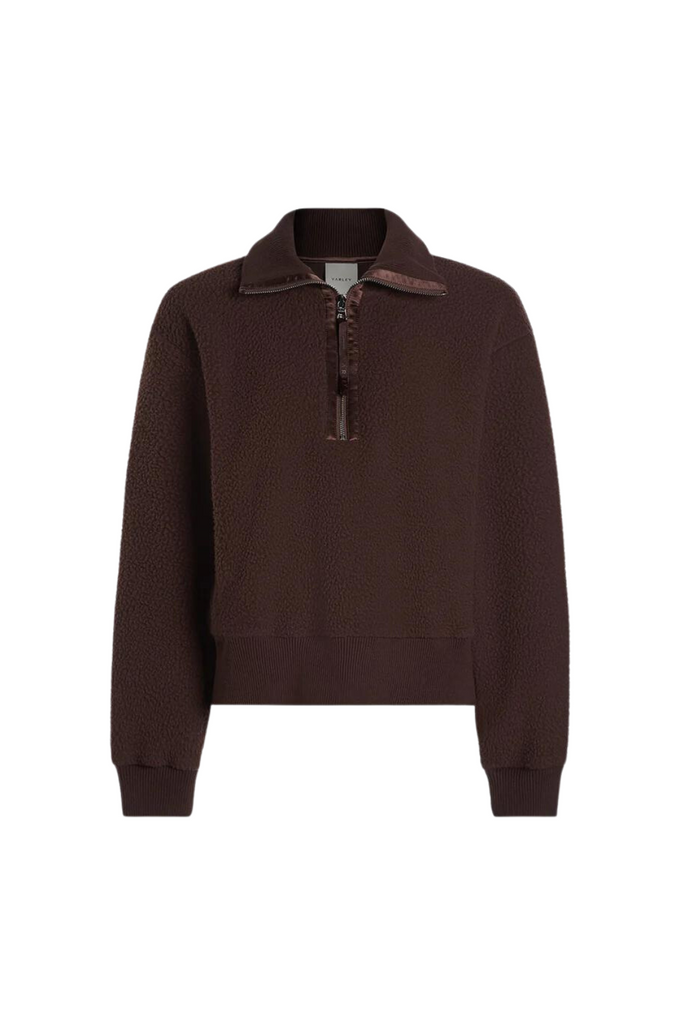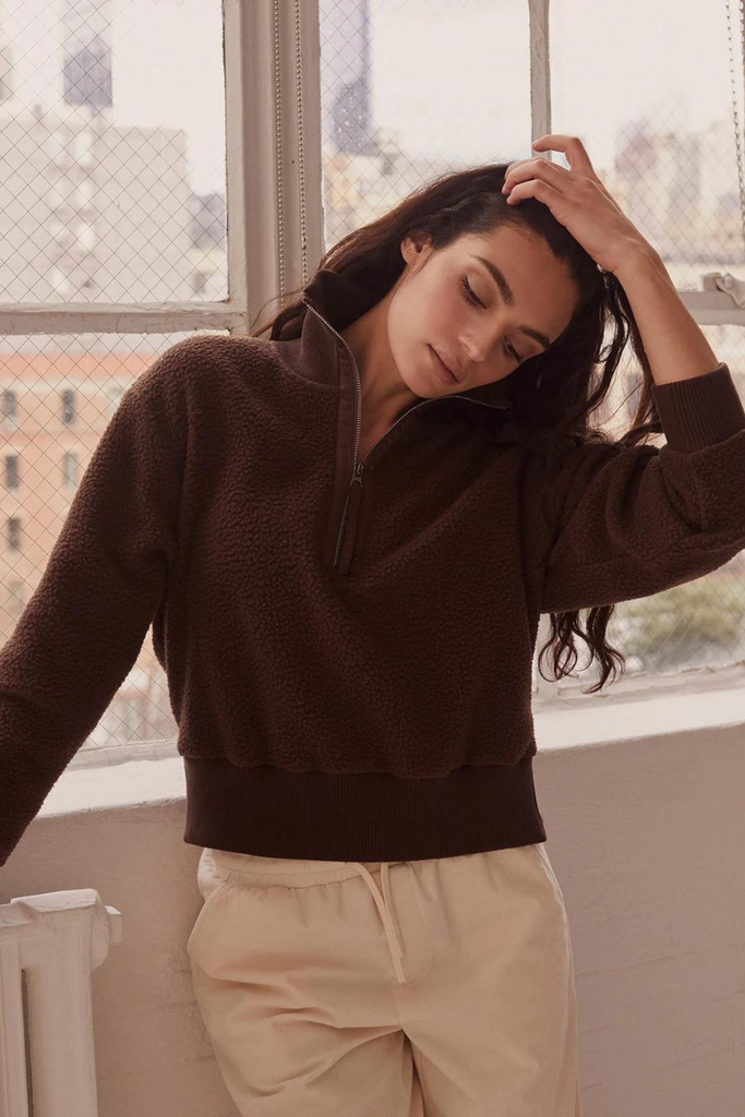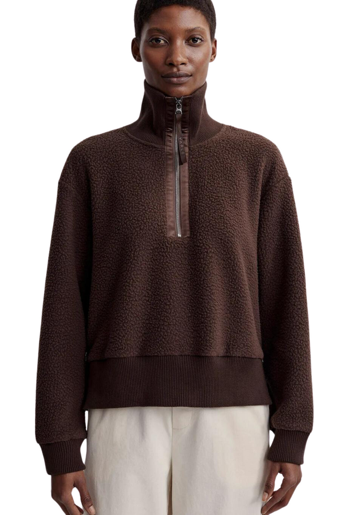 Perfectly suited for layering in cooler weather, the Roselle is a casually elegant half-zip fleece. Crafted entirely from 100% recycled Plush Borg Fleece, this style features a half-zip collar, ribbed cuffs, and comfortably loose-fitting sleeves. The design is elevated with trademark side zip detailing and a luxurious sateen trim.