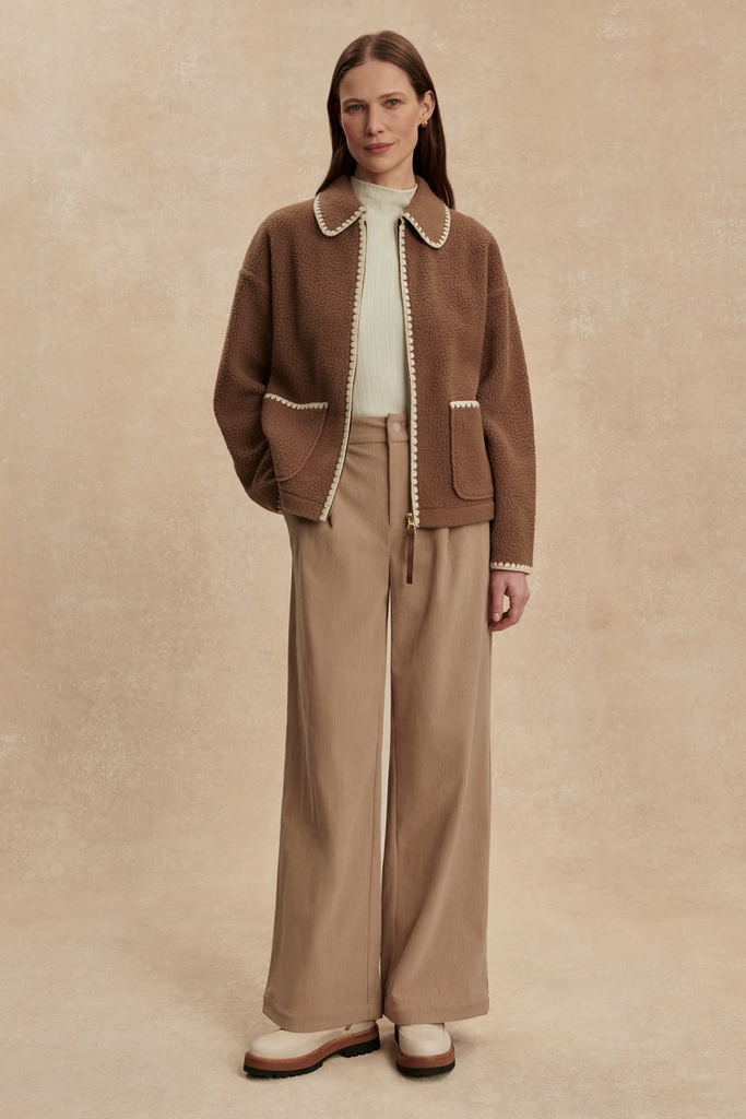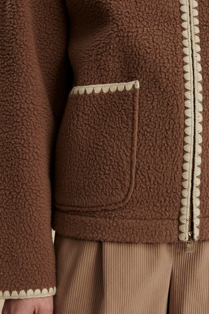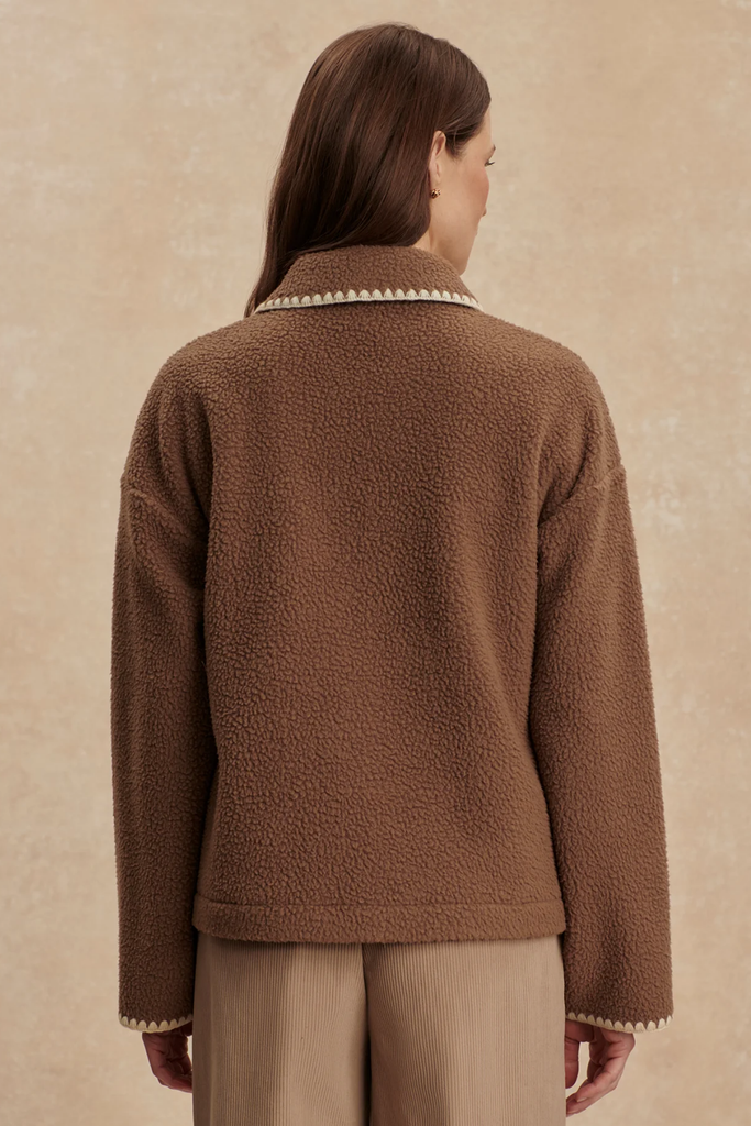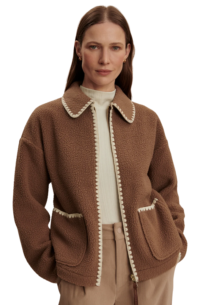 The Ruiko jacket blends cozy fleece comfort with refined contrast embroidery and a classic shirt collar. Crafted from Varley's plush borg fleece, this easy zip-through layer features patch pockets and a practical double-ended zip for effortless, everyday wear.