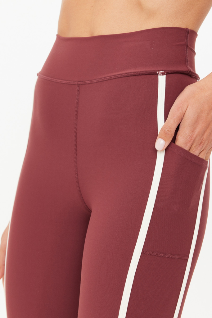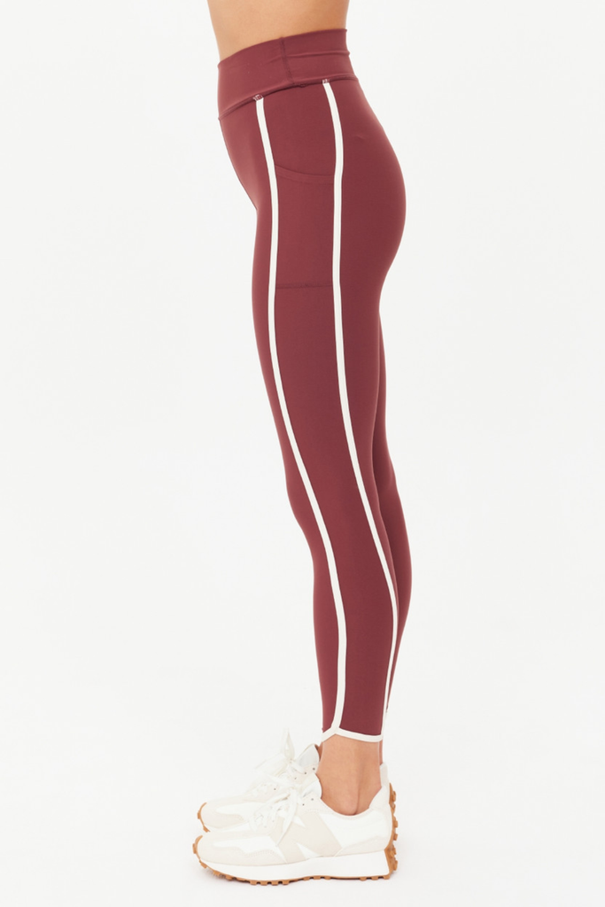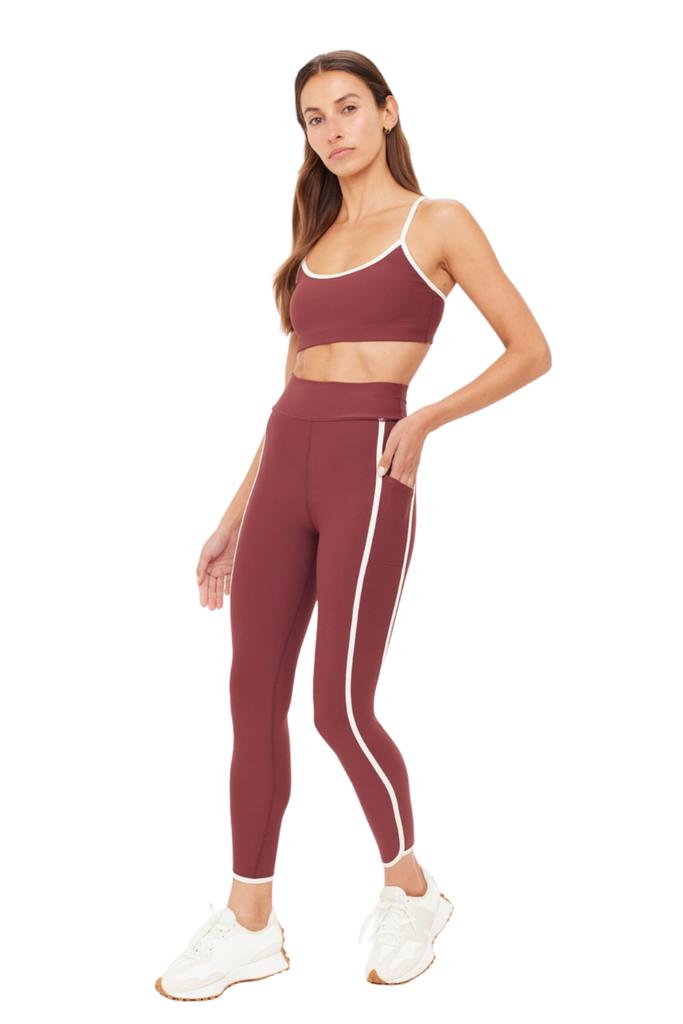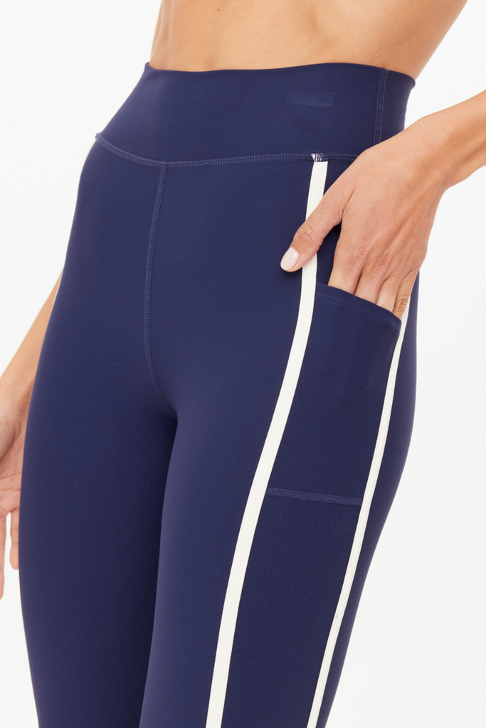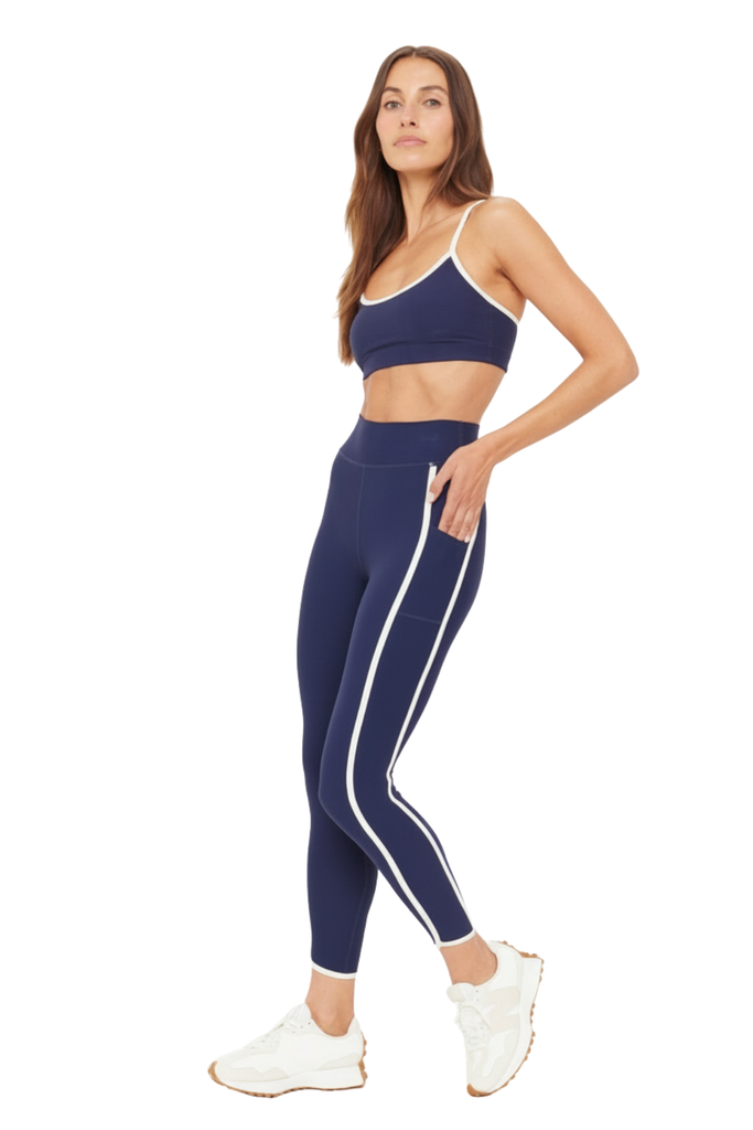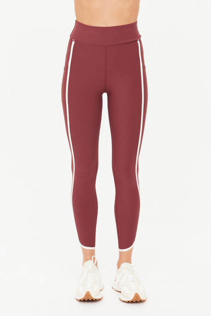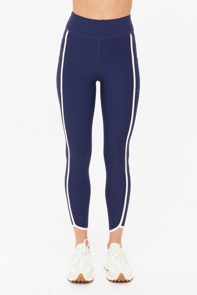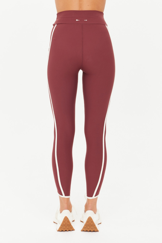 Designed for movement, the Samara 25" Midi Pant delivers a soft, sculpted feel with a modern finish. This mid-rise style lands at a flattering midi length and features contrast cream binding and a curved hem that add subtle definition to the silhouette. Crafted from recycled, peached fabric with an ultra-soft brushed handfeel, it offers breathable, moisture-wicking, quick-dry comfort that keeps up with any routine. Side panel pockets provide practical ease, while a printed arrow at the back lends a refined nod to THE UPSIDE’s signature design language. Effortlessly versatile, it’s a staple that moves beautifully from studio to street.