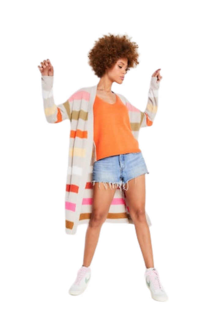 This beautiful cardigan from Lisa Todd is the perfect transitional sweater. We love the length, luxurious knit, and gorgeous striped pattern. Wear over leggings to the studio or denim for an effortless look.