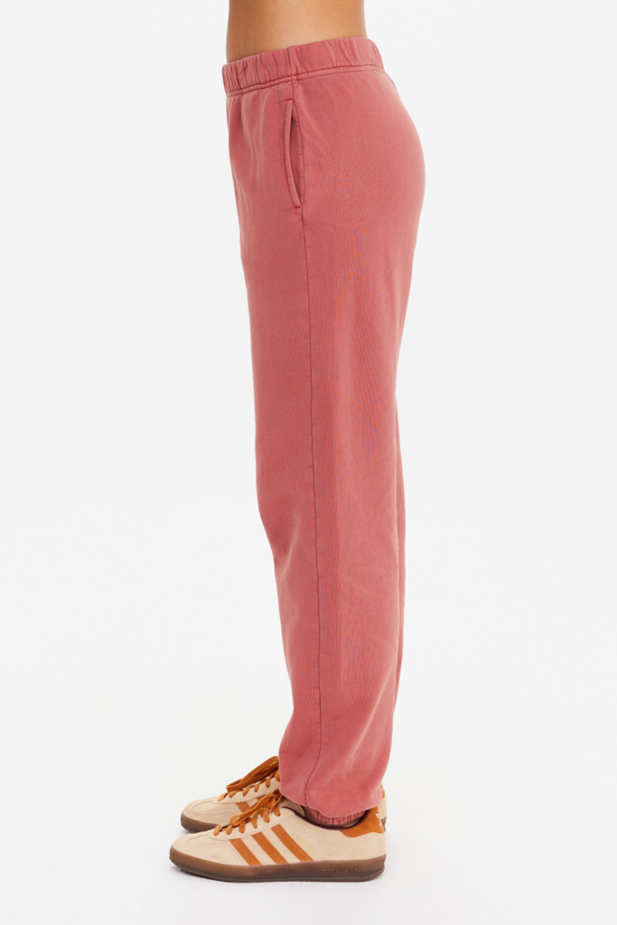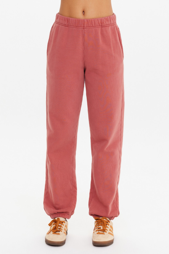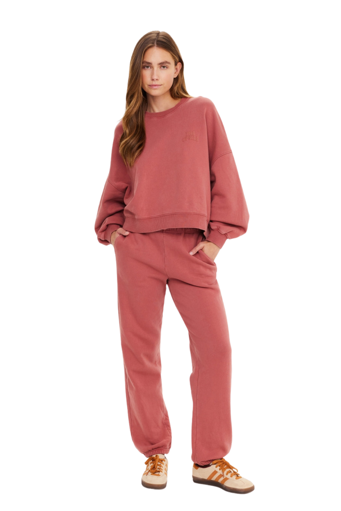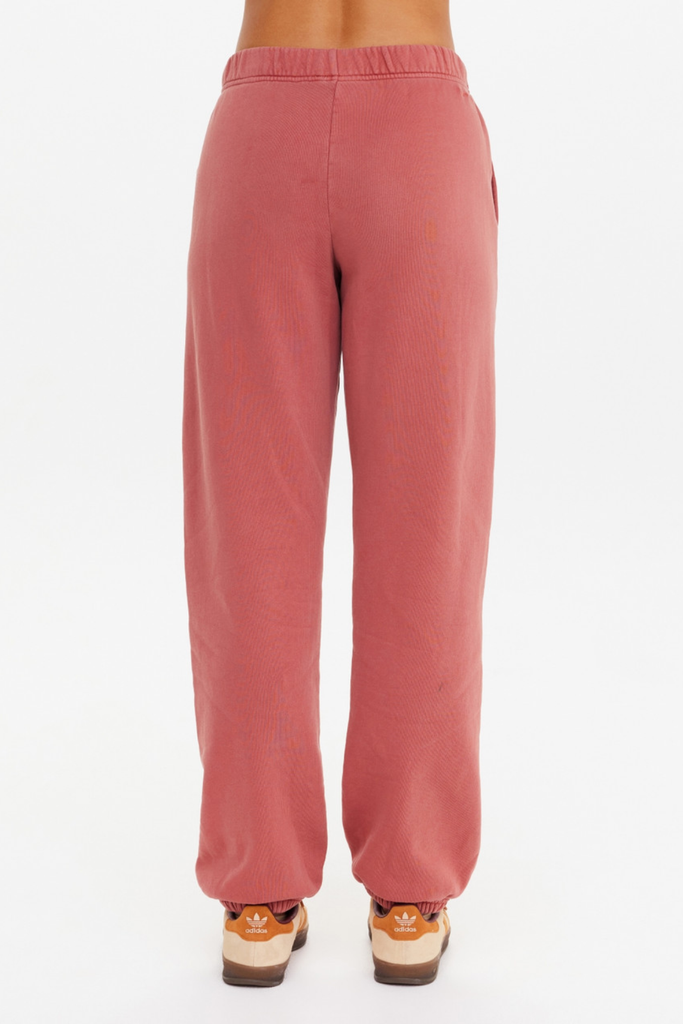 The Serendipity Harrison Track Pant pairs everyday ease with a standout hue. Designed with a relaxed fit and elasticated waistband, this sienna-toned style is crafted from 100% brushed organic cotton loopback for an exceptionally soft, lived-in feel. Side seam pockets and elasticated cuffs add casual functionality, while an embroidered arrow at the back offers a subtle nod to THE UPSIDE’s signature aesthetic. Effortless, cozy, and bold in color—it's a lounge essential with playful edge.