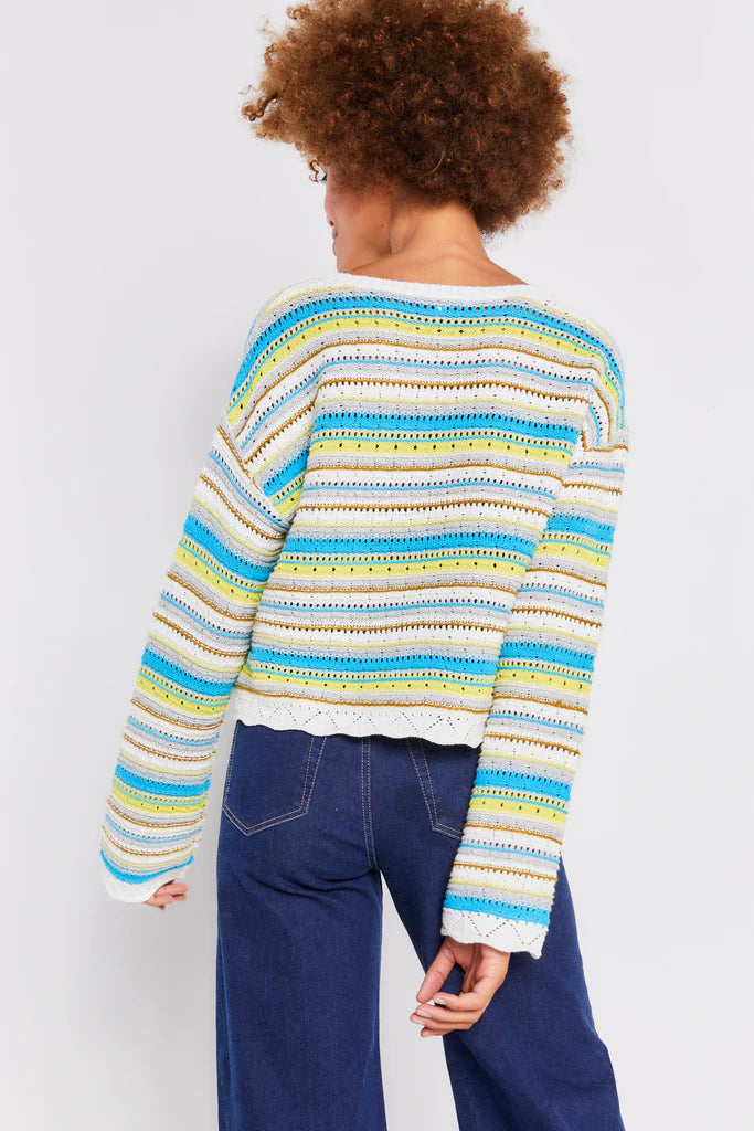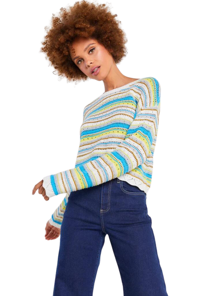 This fun crewneck from Lisa Todd is perfect for welcoming summer. We love the lightweight fabric and scallop-hem detailing.
