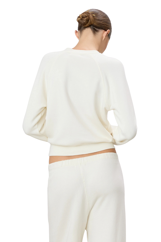 Made from soft, lightweight French terry, this cropped raglan sweatshirt offers an easy, relaxed fit with a subtly shrunken sleeve. A modern take on a classic silhouette—perfect for layering or wearing solo year-round.