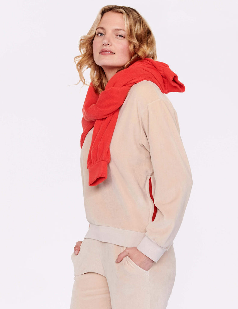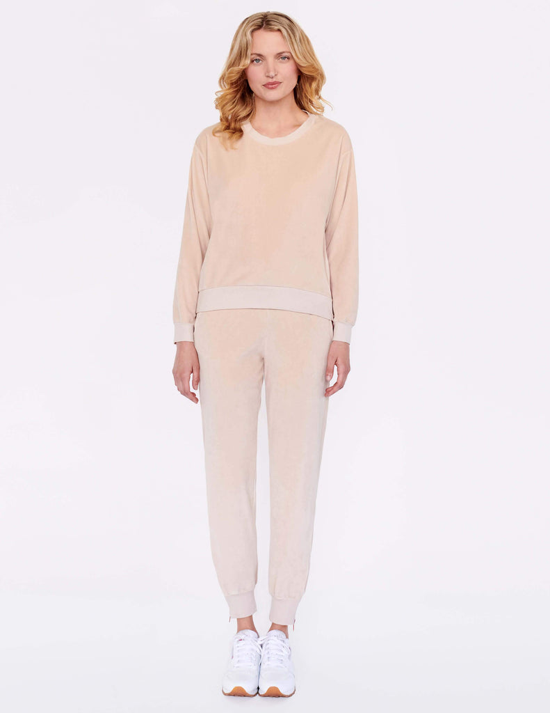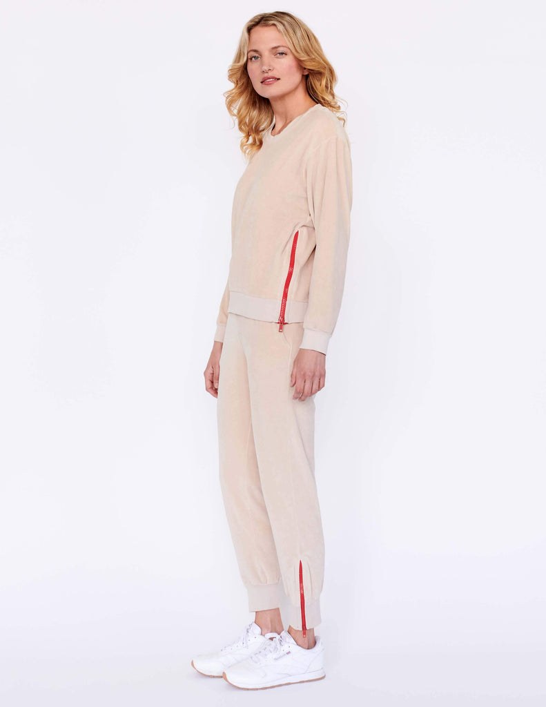 Our new favorite velour tracksuit. We love these pieces from Sundry; they are super luxe fabric, flattering fit, and have cute design details.