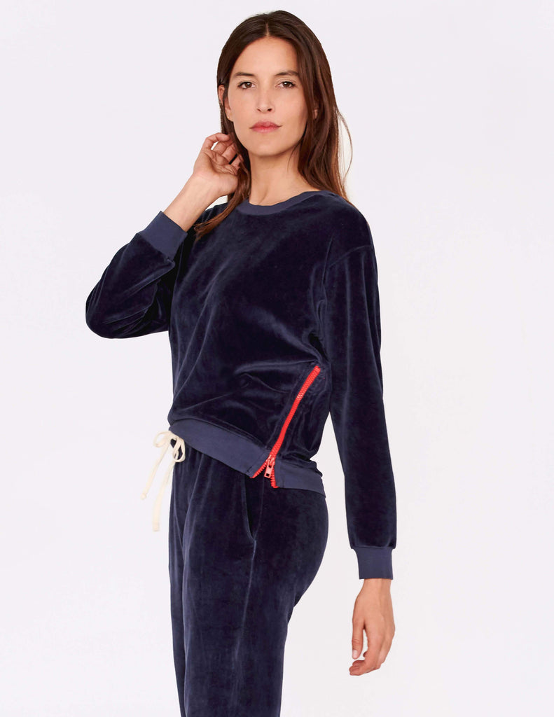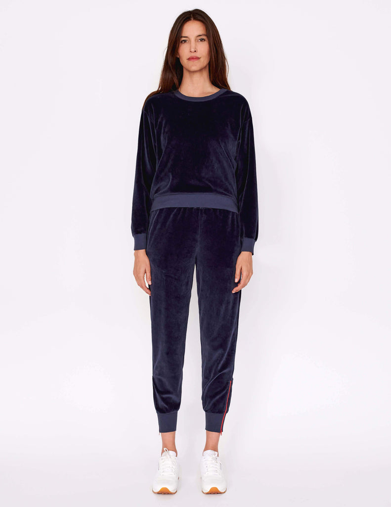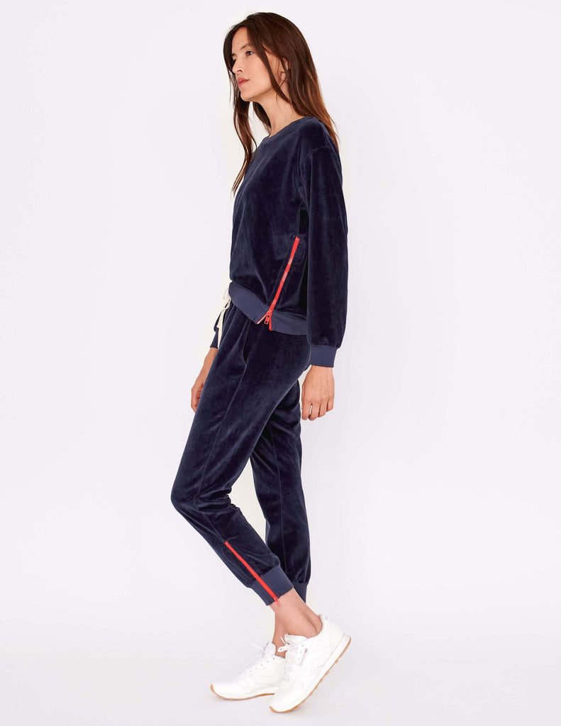 Our new favorite velour tracksuit. We love these pieces from Sundry; they are super luxe fabric, flattering fit, and have cute design details.
