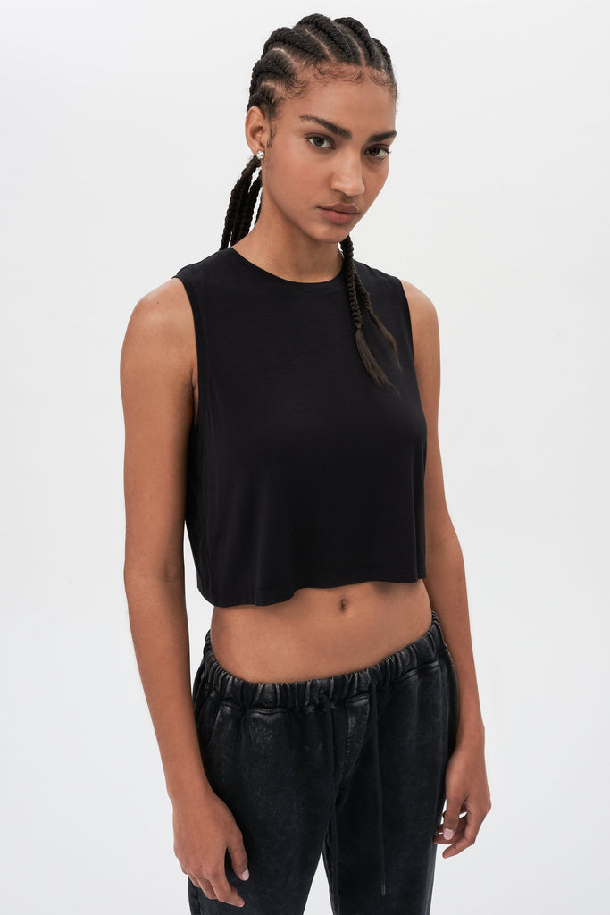 The perfect complement to your high waist leggings, this crop top from Splits59 is lightweight, super soft, and breezy for the summer heat.