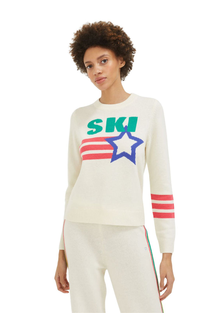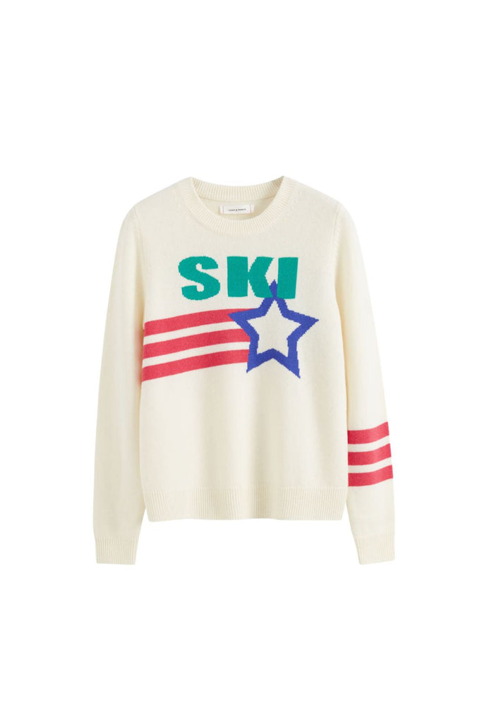 This knitted sweater with retro designs will be the perfect mid-weight top on and off the slopes. It's a wool and cashmere blend that is both cozy and flattering.