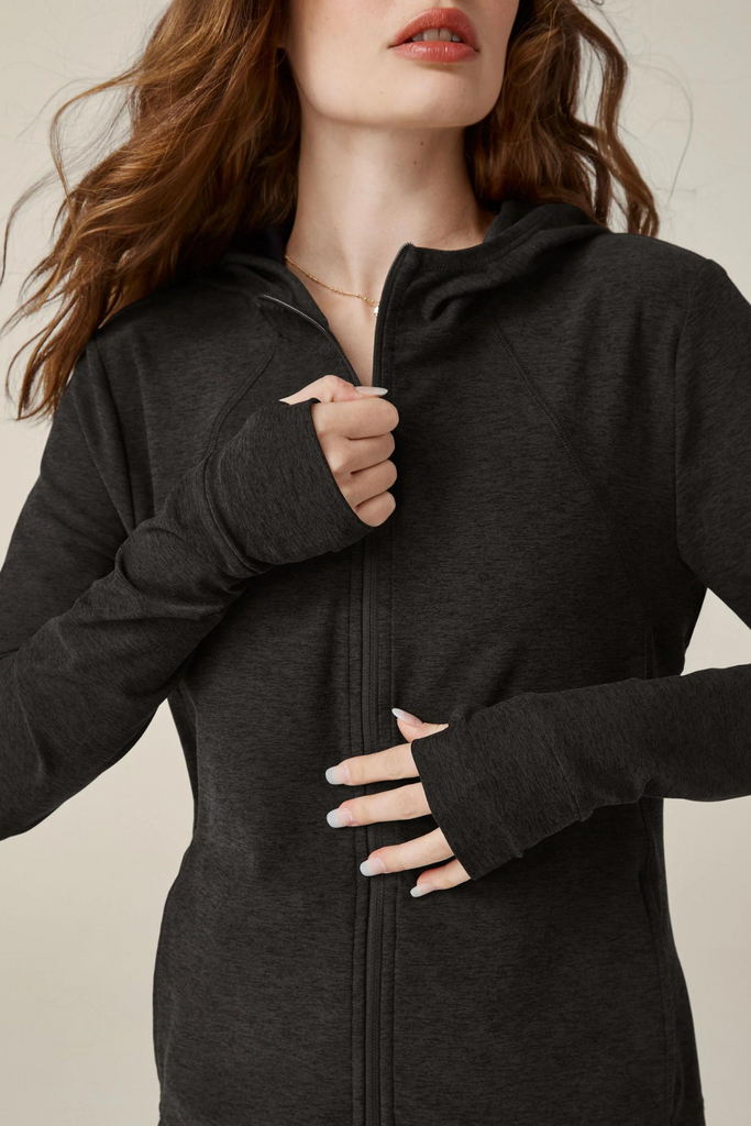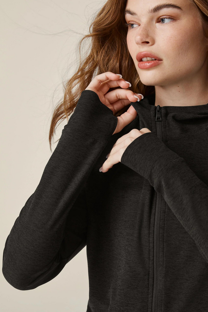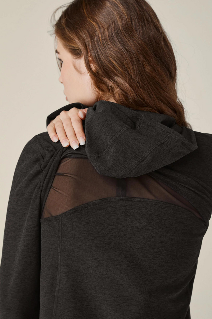 Elevate your cardio routine with this high-performing active hoodie designed for the ultimate 'power walk'. Featuring a unique back mesh panel for enhanced breathability and thumbholes on the sleeves to keep you focused and comfortable, it's your go-to gear for every step of the way.