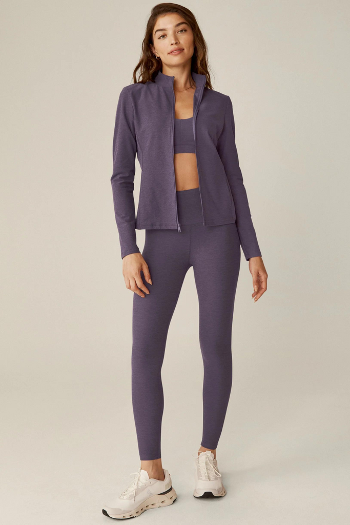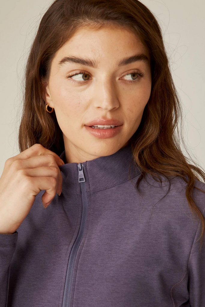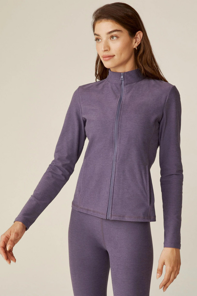 Transition seamlessly from workout to night out with this mock neck jacket crafted from Beyond Yoga's signature performance fabric, featuring a zip-up front and convenient inseam pockets. Whether layered over your favorite workout set or paired with a tee and jeans, it's the perfect choice for a chic and versatile cold-weather ensemble.