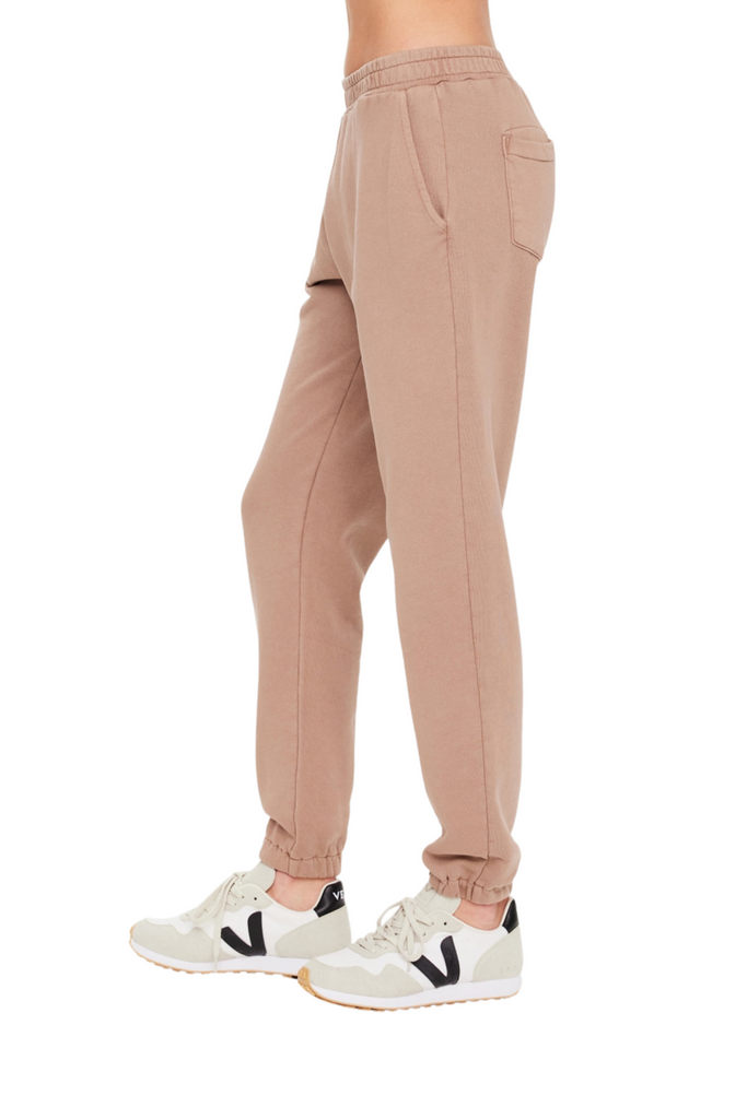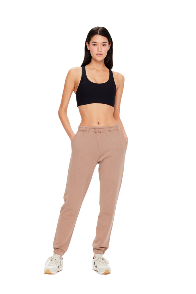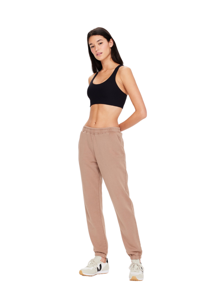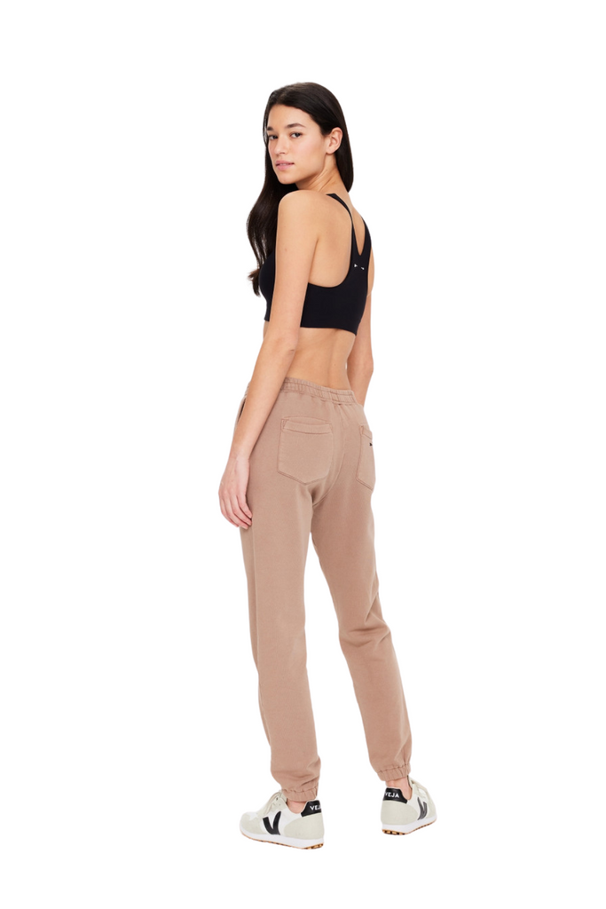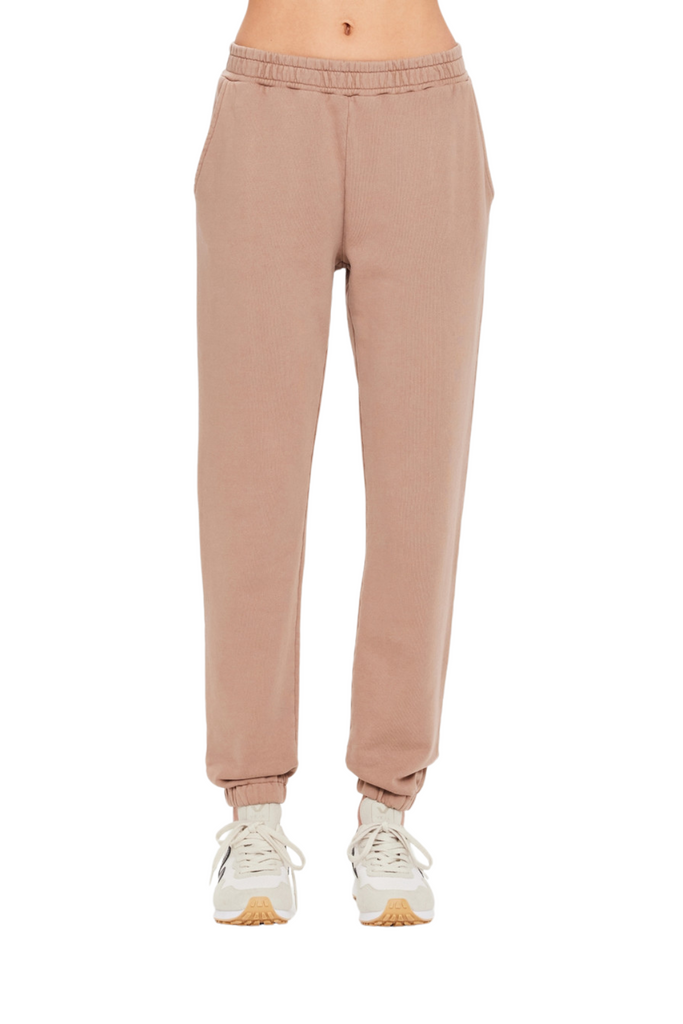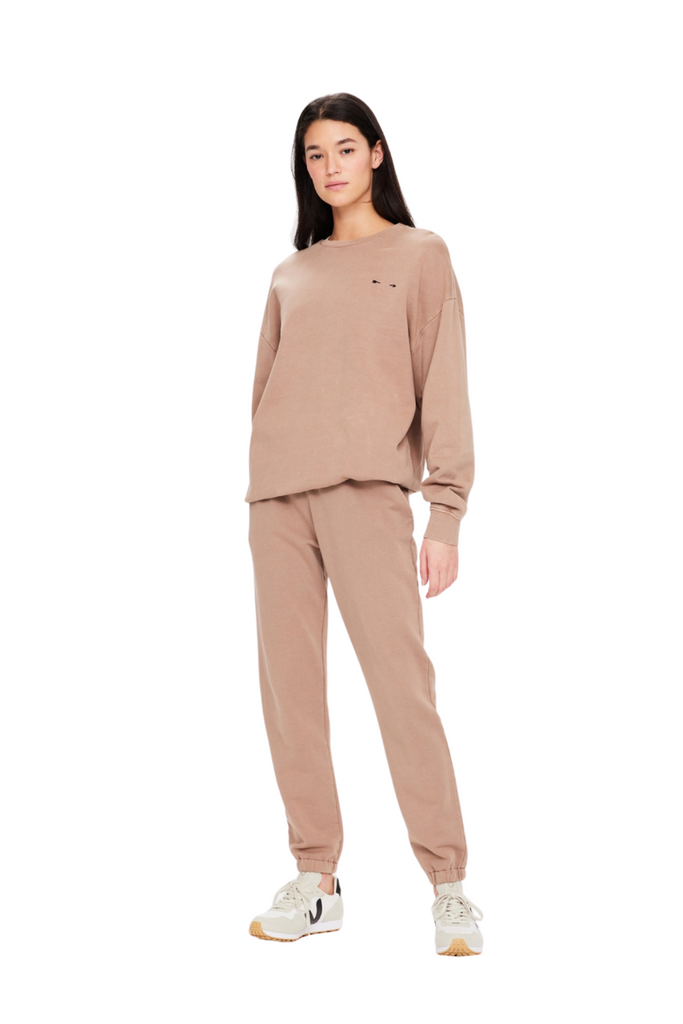 Discover comfort with the Sphinx Blake Trackpant, a classic-fit track pant featuring elasticated cuffs, side seam pockets, back patch pockets, and a contrast embroidered logo at the back pocket, all crafted from organic cotton French terry dyed in a soothing brown shade.