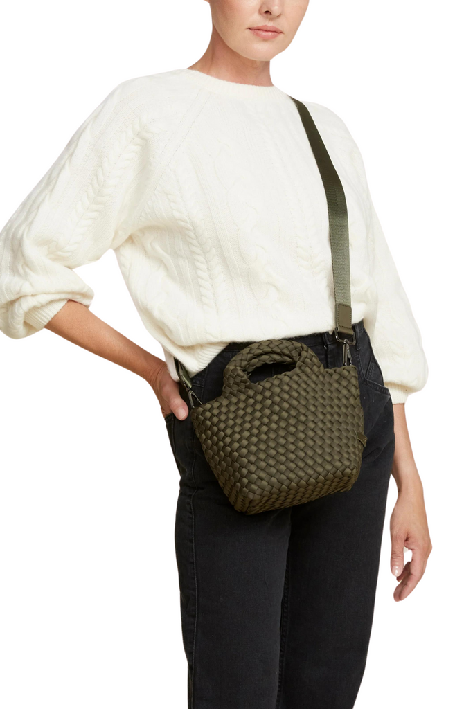 Naghedi's neoprene St. Barths Tote has been reimagined again, this time in plus petit proportions. The latest "Petit'' size echoes the silhouette of our classic shape and seamlessly transitions from a night out to morning errands, fitting plenty of your essentials comfortably. Crossbody strap and zippered pouch included.