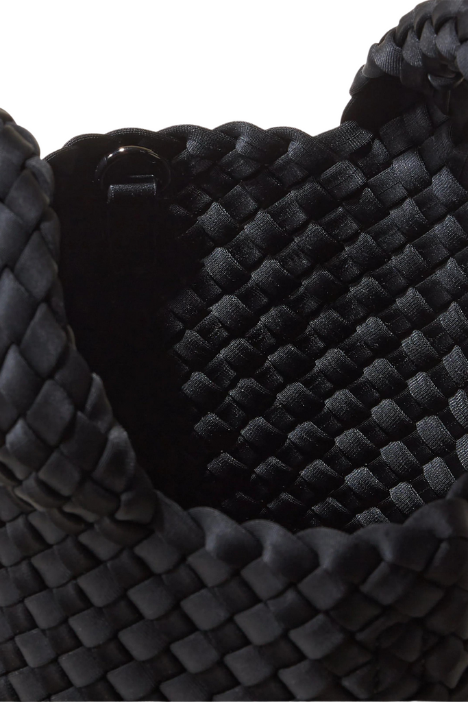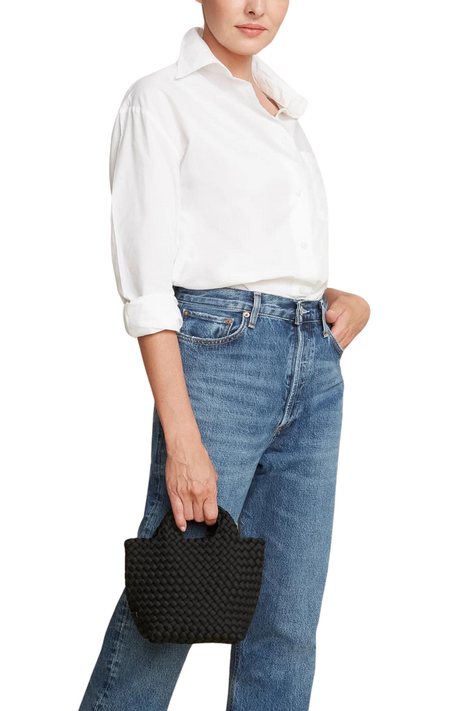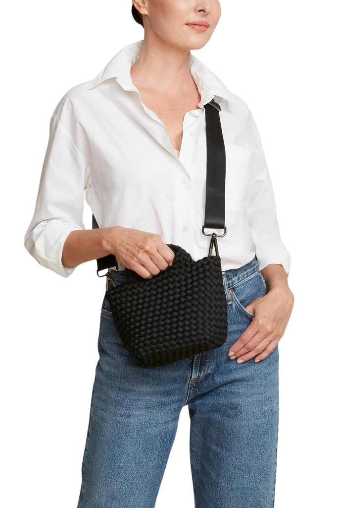 Naghedi's neoprene St. Barths Tote has been reimagined again, this time in petite proportions. The latest "Petite'' size echoes the silhouette of our classic shape and seamlessly transitions from a night out to morning errands, fitting plenty of your essentials comfortably. Crossbody strap and zippered pouch included.