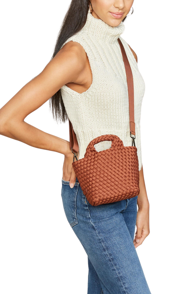 Naghedi's neoprene St. Barths Tote has been reimagined again, this time in petite proportions. The latest "Petite'' size echoes the silhouette of our classic shape and seamlessly transitions from a night out to morning errands, fitting plenty of your essentials comfortably. Crossbody strap and zippered pouch included.