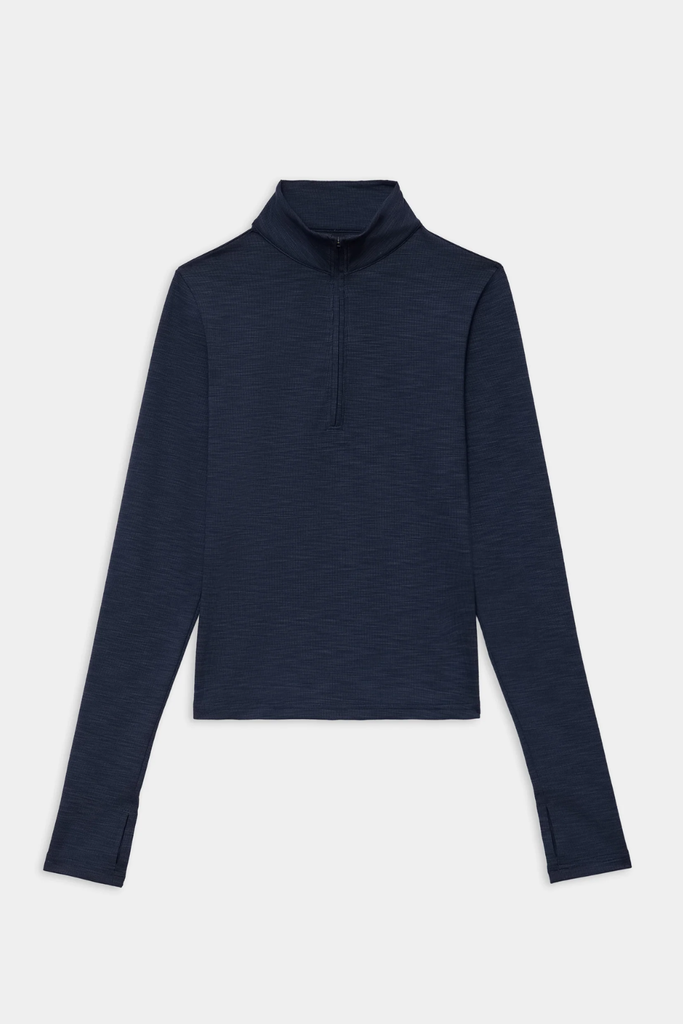 The Active Rib Half Zip, now updated in a waist-length silhouette, offers an easy layering piece for added warmth—whether styled over a matching set or paired with everyday sweats.