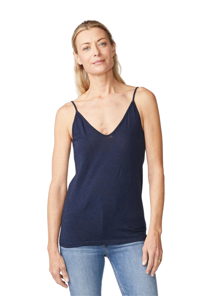 Elevate your essentials with the Supima Slub Jersey V-neck Cami, a must-have layering piece crafted from exceptionally soft Supima cotton. Featuring a double v-neckline in the front and back, this cami is proudly made in the United States.