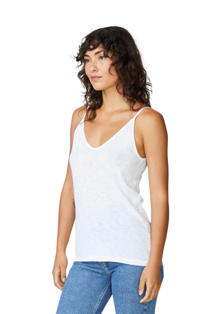 Elevate your essentials with the Supima Slub Jersey V-neck Cami, a must-have layering piece crafted from exceptionally soft Supima cotton. Featuring a double v-neckline in the front and back, this cami is proudly made in the United States.