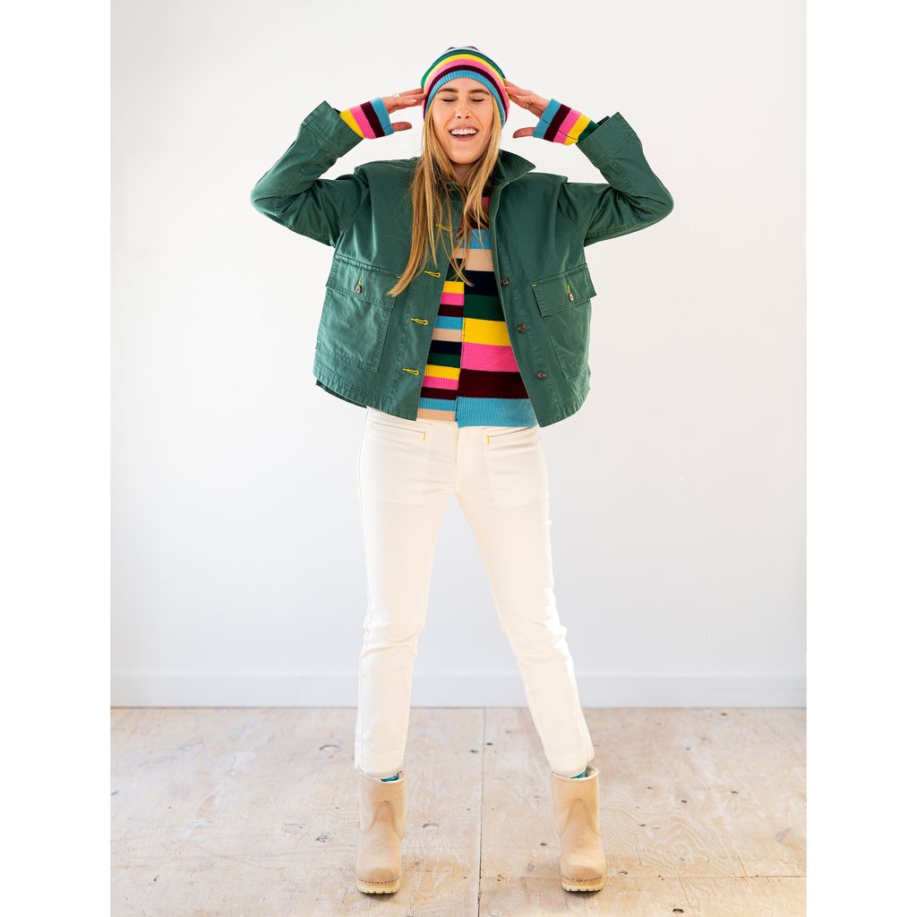 We are so in love with this crew from Kerri Rosenthal. The luxurious cashmere, relaxed fit, and neutral tones are flattering and beautiful. We love to pair over leggings for an easy, effortless look.